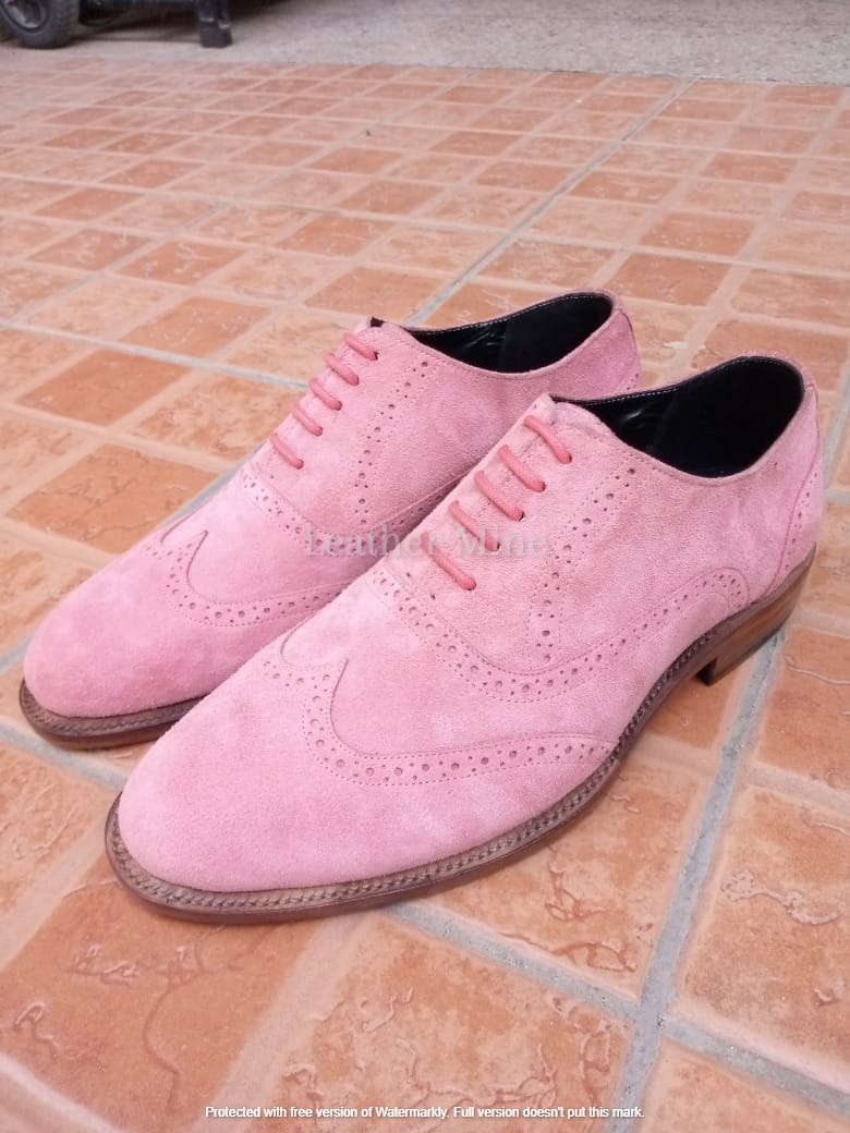 Men's Handmade Pink Suede Leather Oxfords Formal Custom Made Shoes