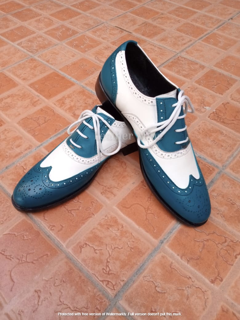 Handmade Two Tone Wingtip Dress Shoes, Custom Made Shoes