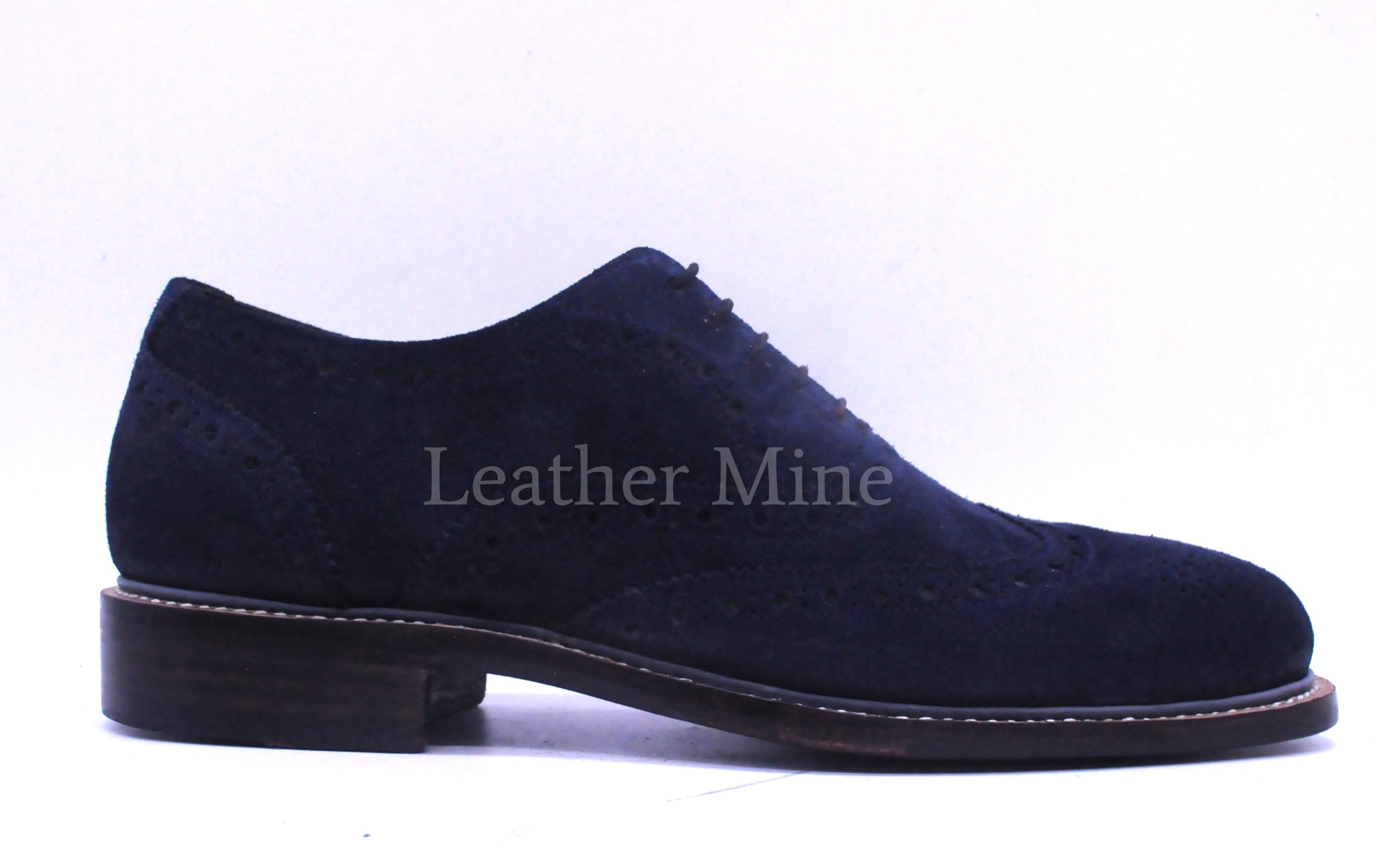 Best Handmade Leather Dress Shoes For Men, Blue Suede Wingtip Shoes
