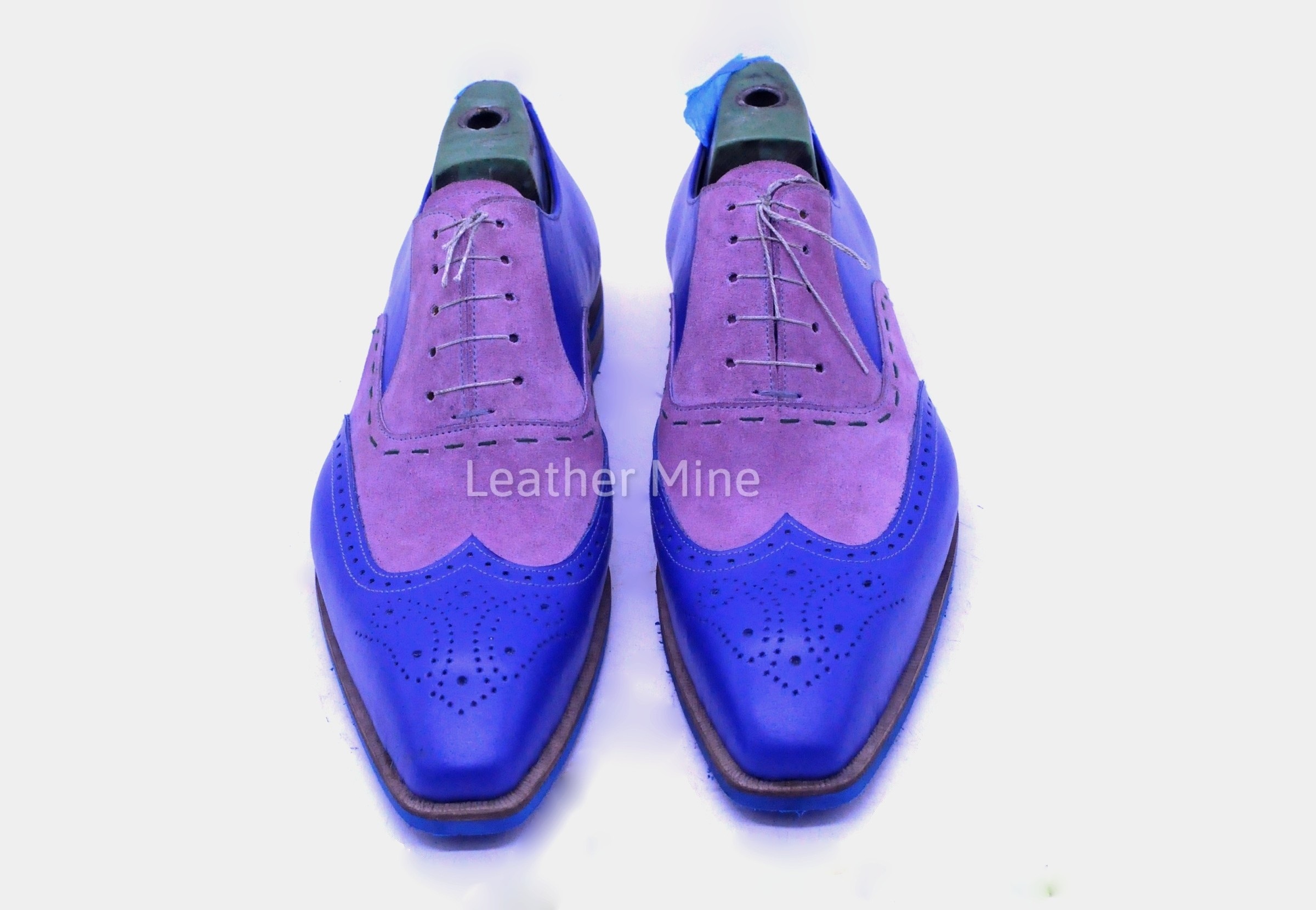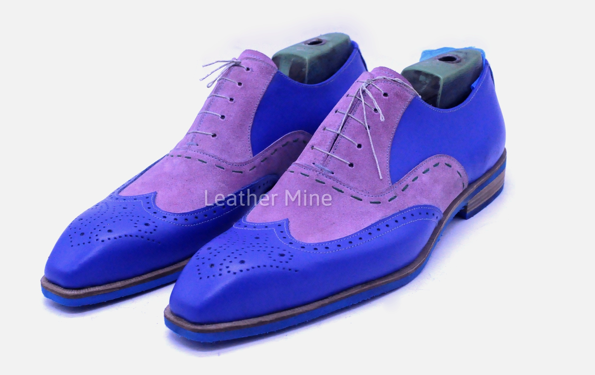Men's Handmade Blue Wingtip Formal Custom Made Leather Shoes