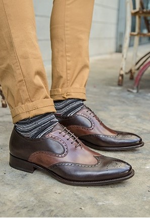 Handmade Two Tone Brogue Wingtip Leather Dress Shoes For Men Custom Made On Orders