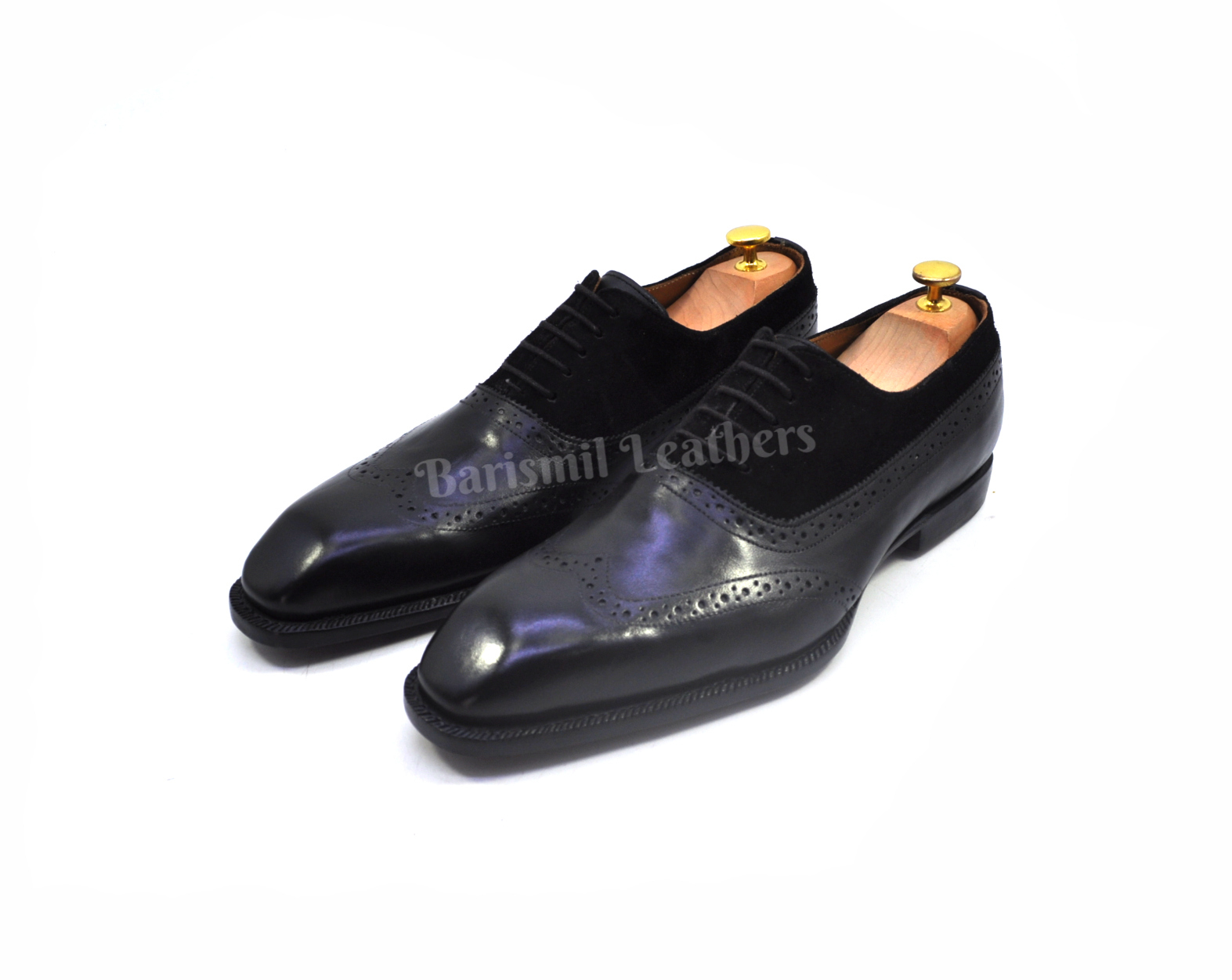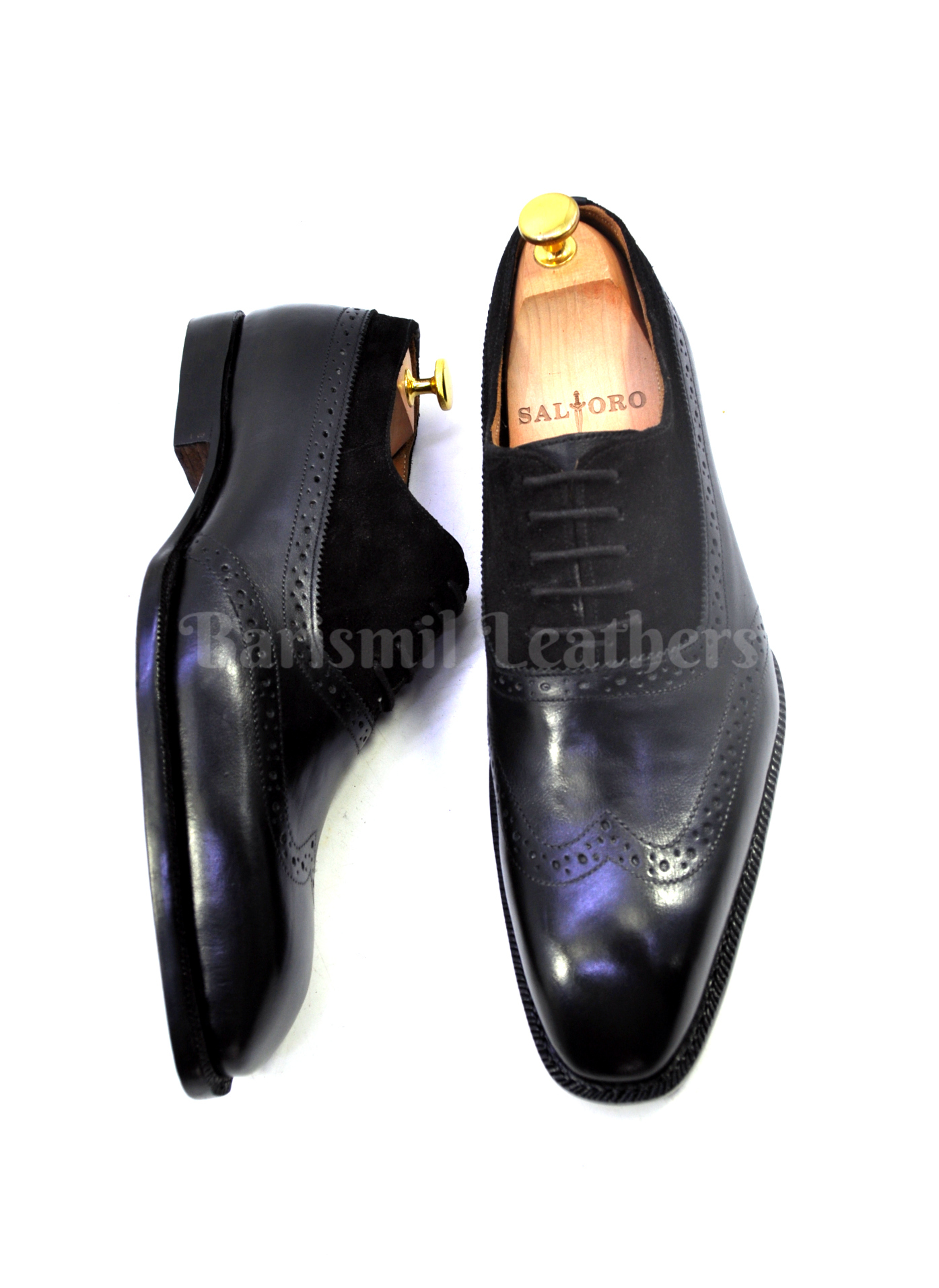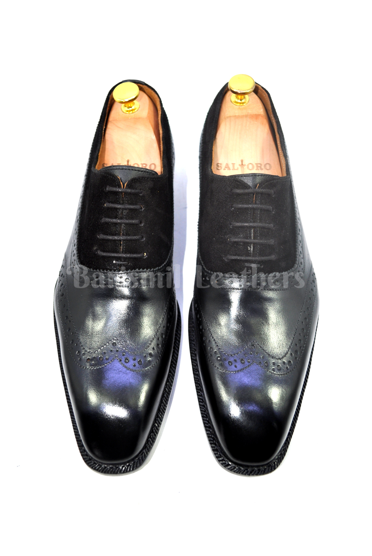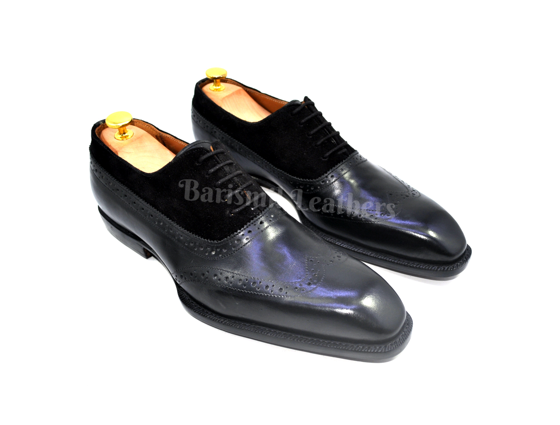 New handmade oxfords black leather wingtip and semi brogue lace up men dress shoes custom made on order.