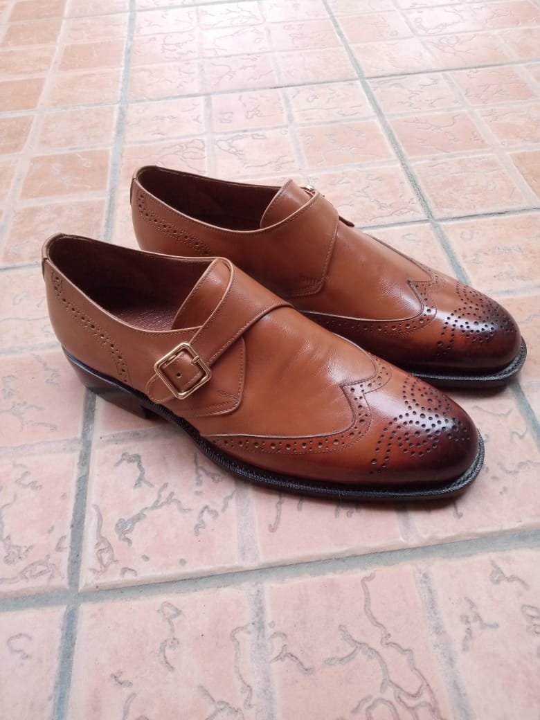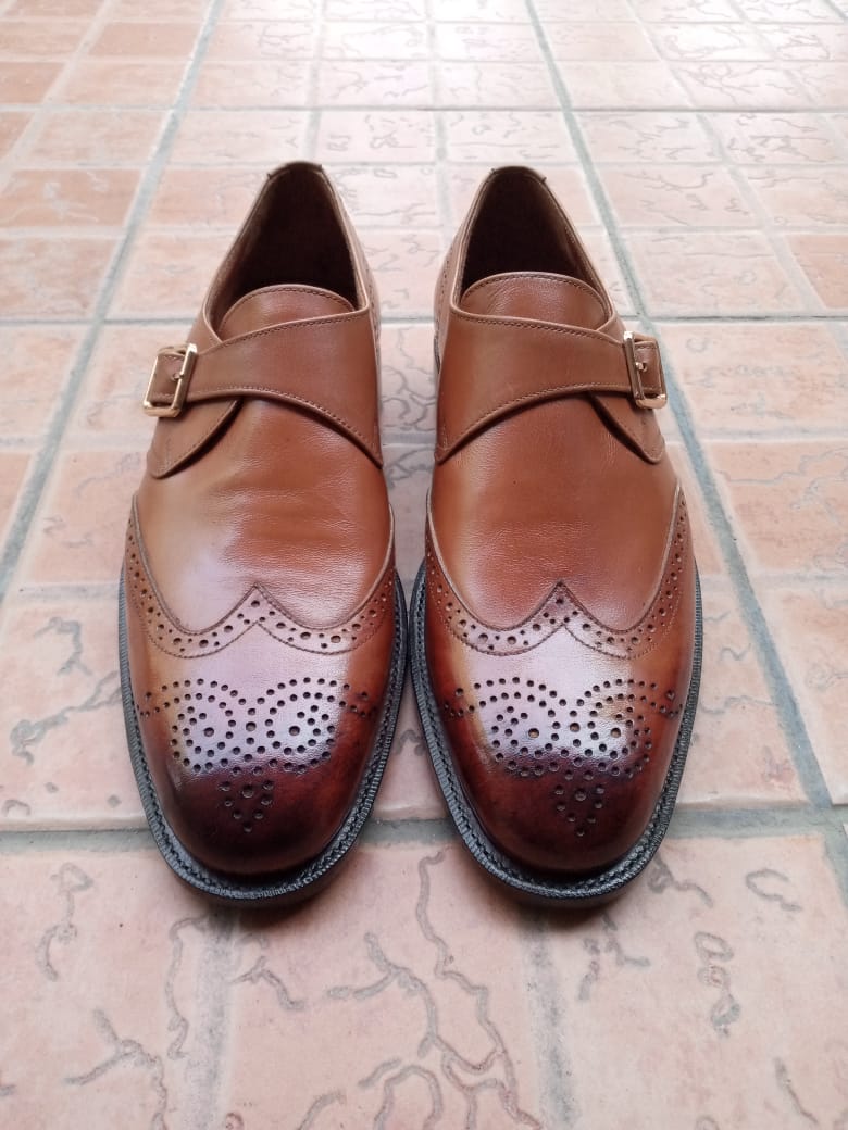 Men's Handmade Monk Shoes, Genuine Leather Monk Strap Shoes, Brogue Monk Formal Shoes for Men.