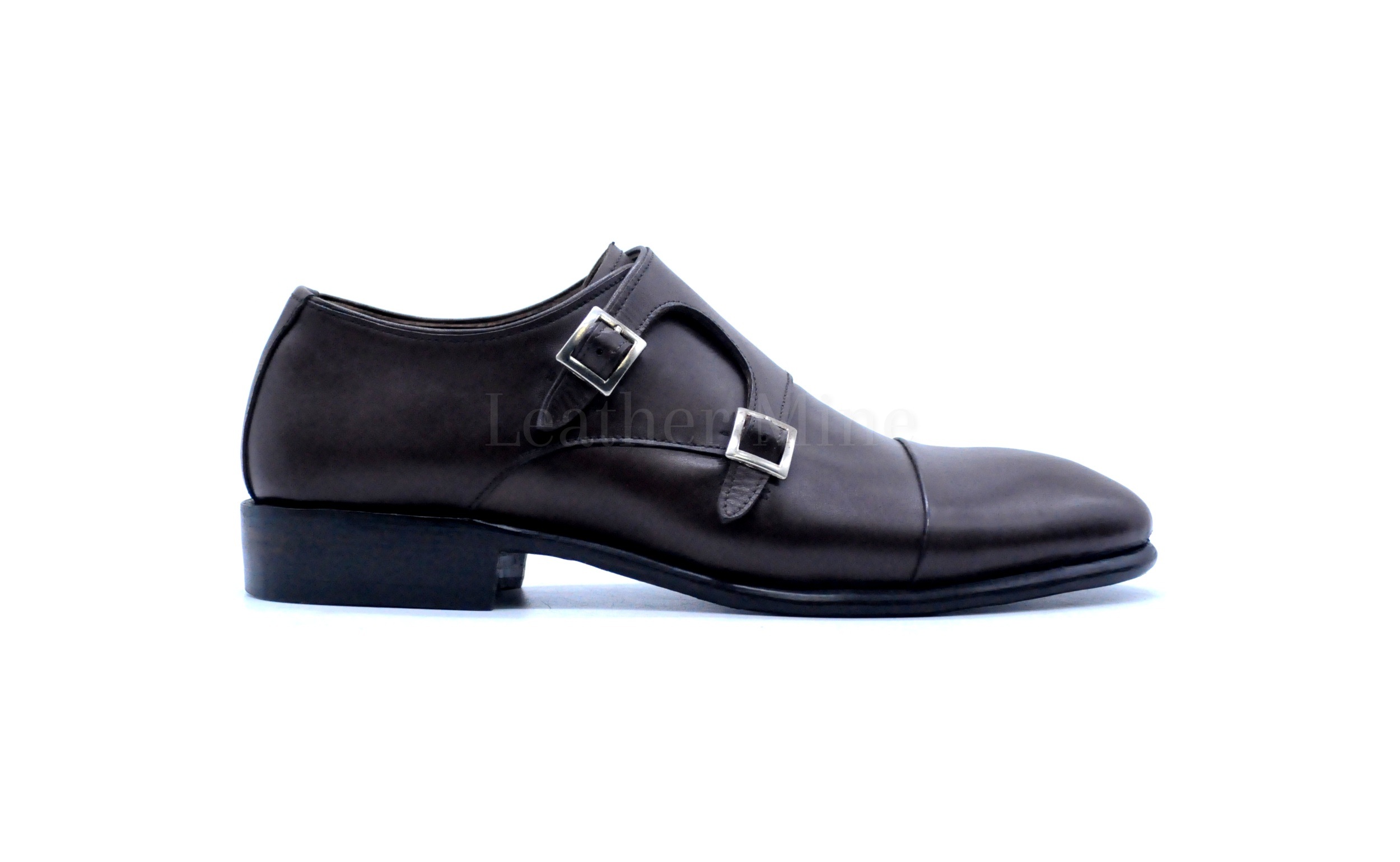 Handmade Brown Double Monk Custom Made Shoes, Leather Formal Shoes Mens