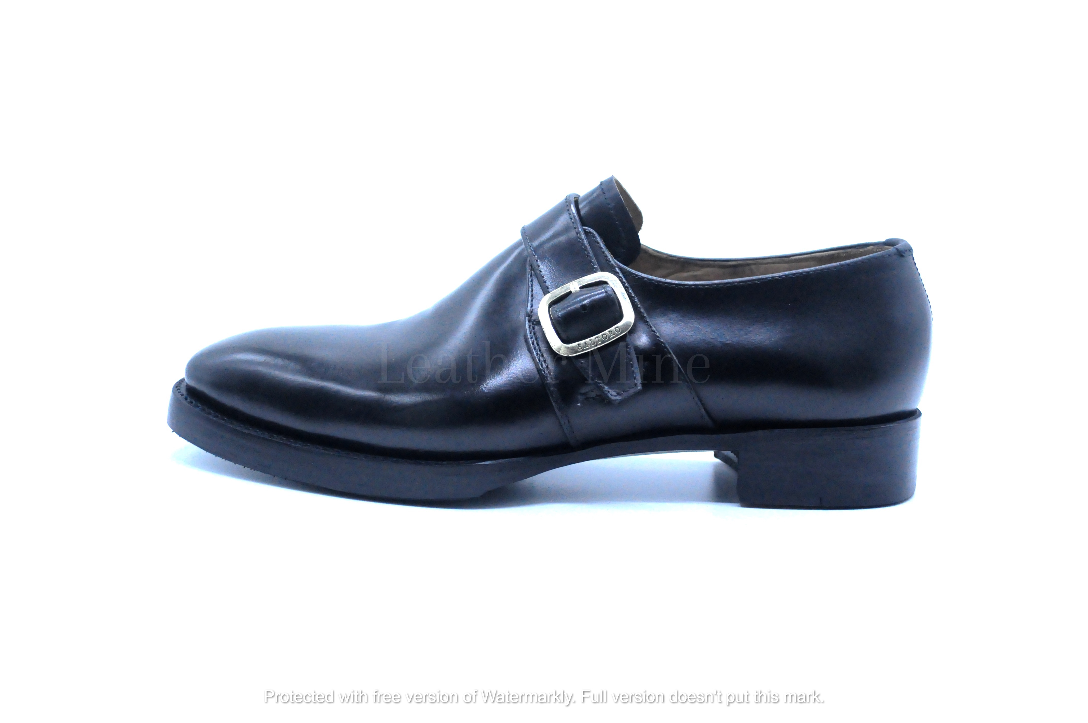 Men's Handmade Black Leather Monk Strap Formal Custom Made Shoes