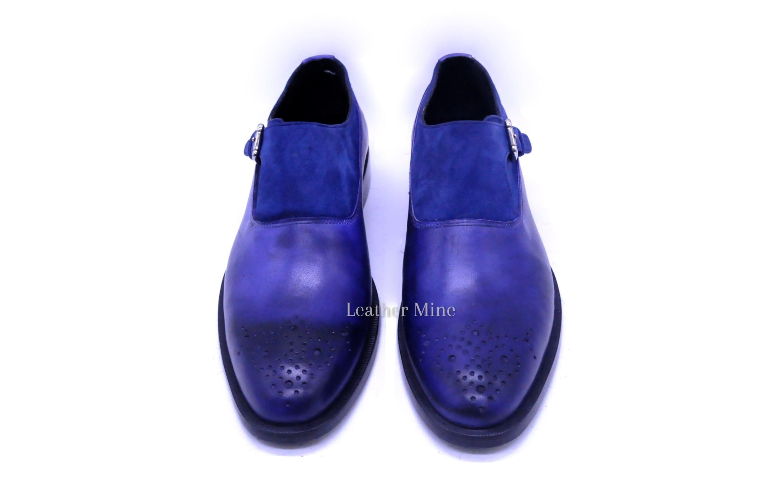 Men's Handmade Blue Patina Leather Monk Strap Formal Custom Made Shoes