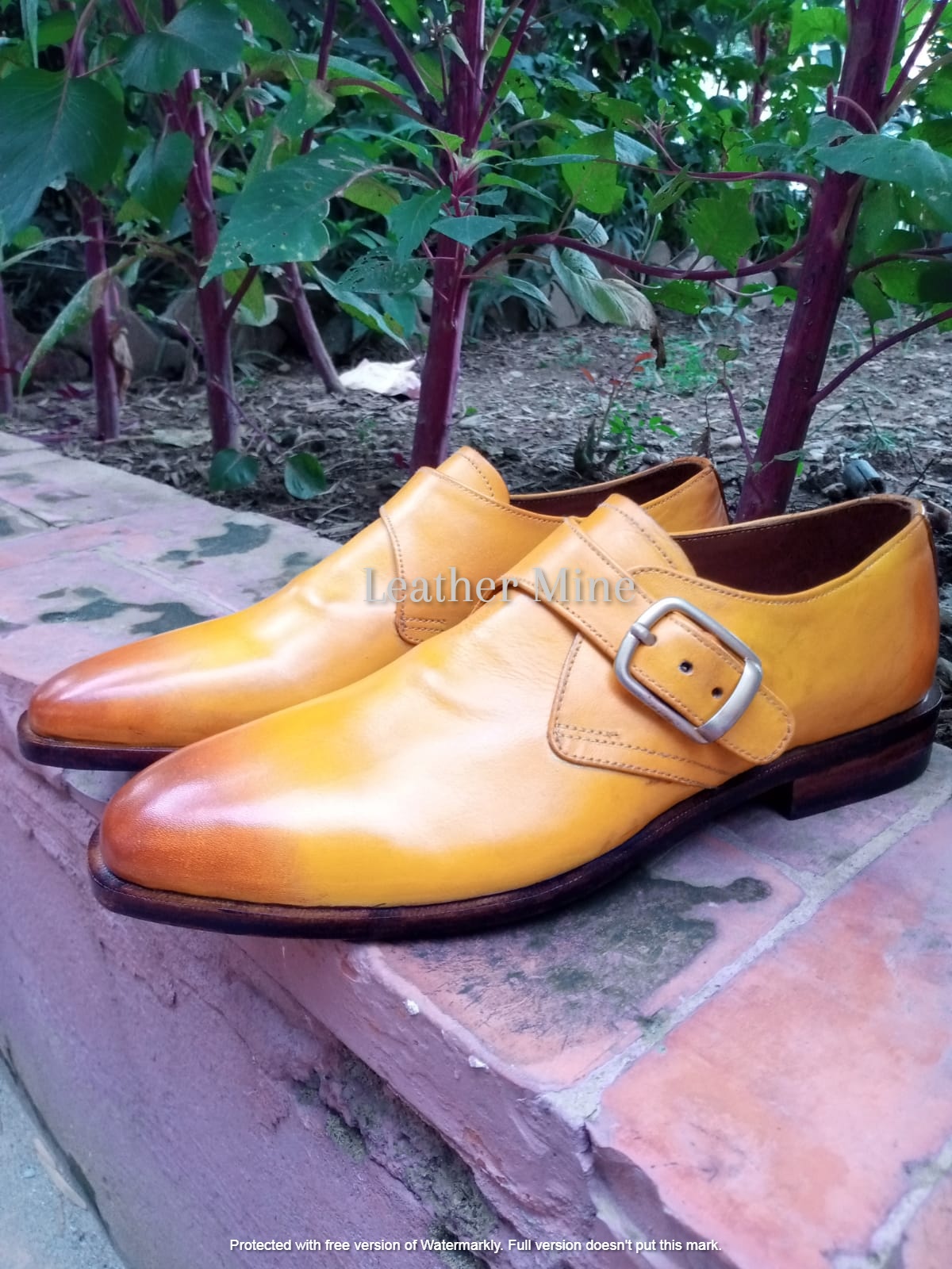 Men's Handmade Tan Patina Leather Monk Strap Formal Custom Shoes
