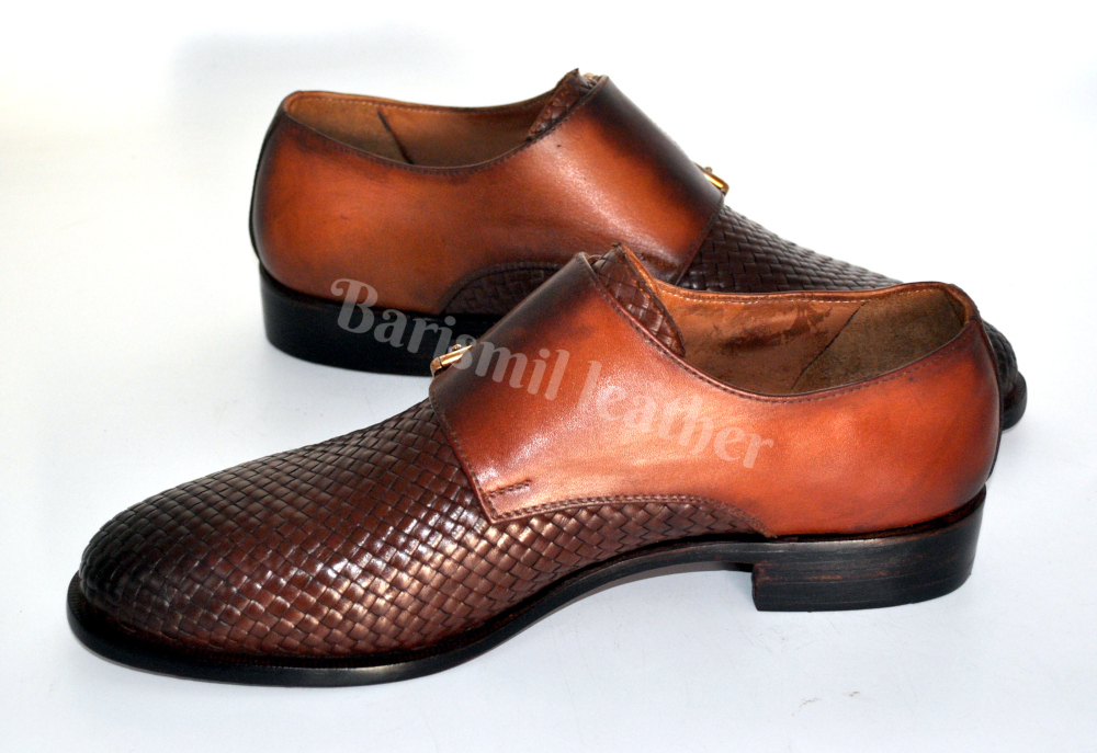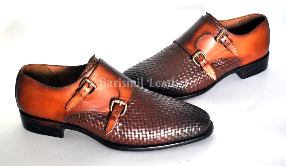 Handmade monk strap leather two tone dress shoes for men double monk shoes