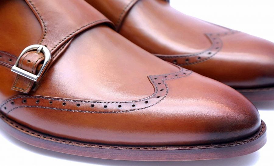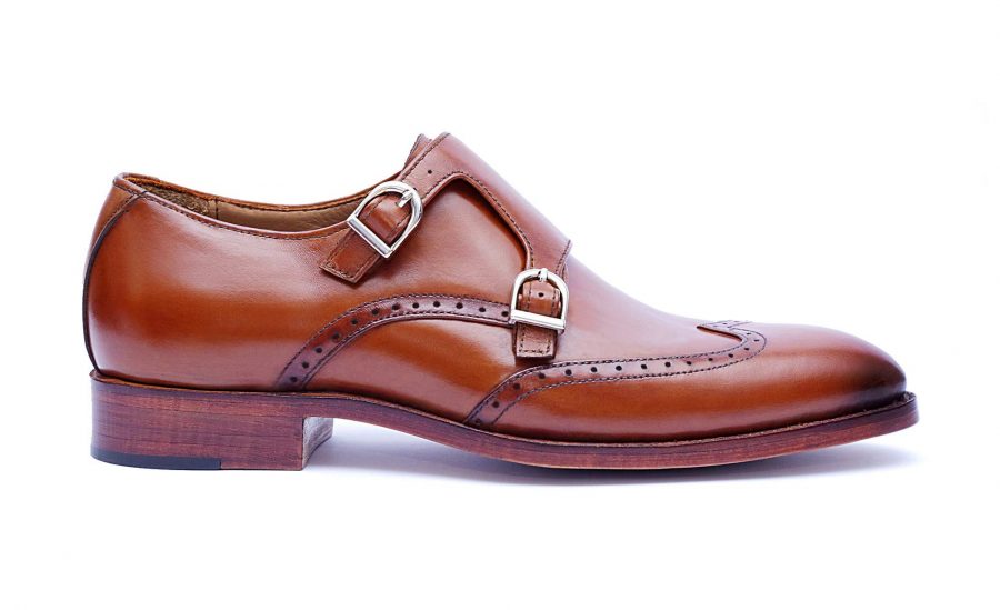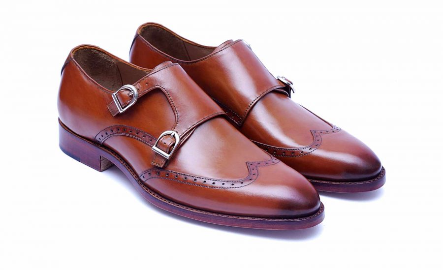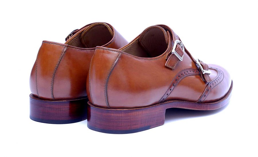 Handmade leather double monk brown patina leather men dress formal shoes custom made on orders leather handmade shoes