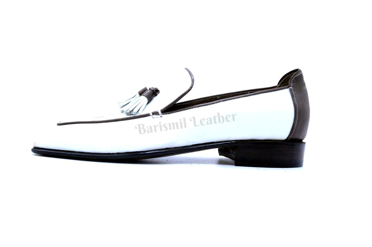 Handmade Leather White Tassel Loafer's, Dress shoes Men's, Handmade Leather Shoes, Formal Shoes