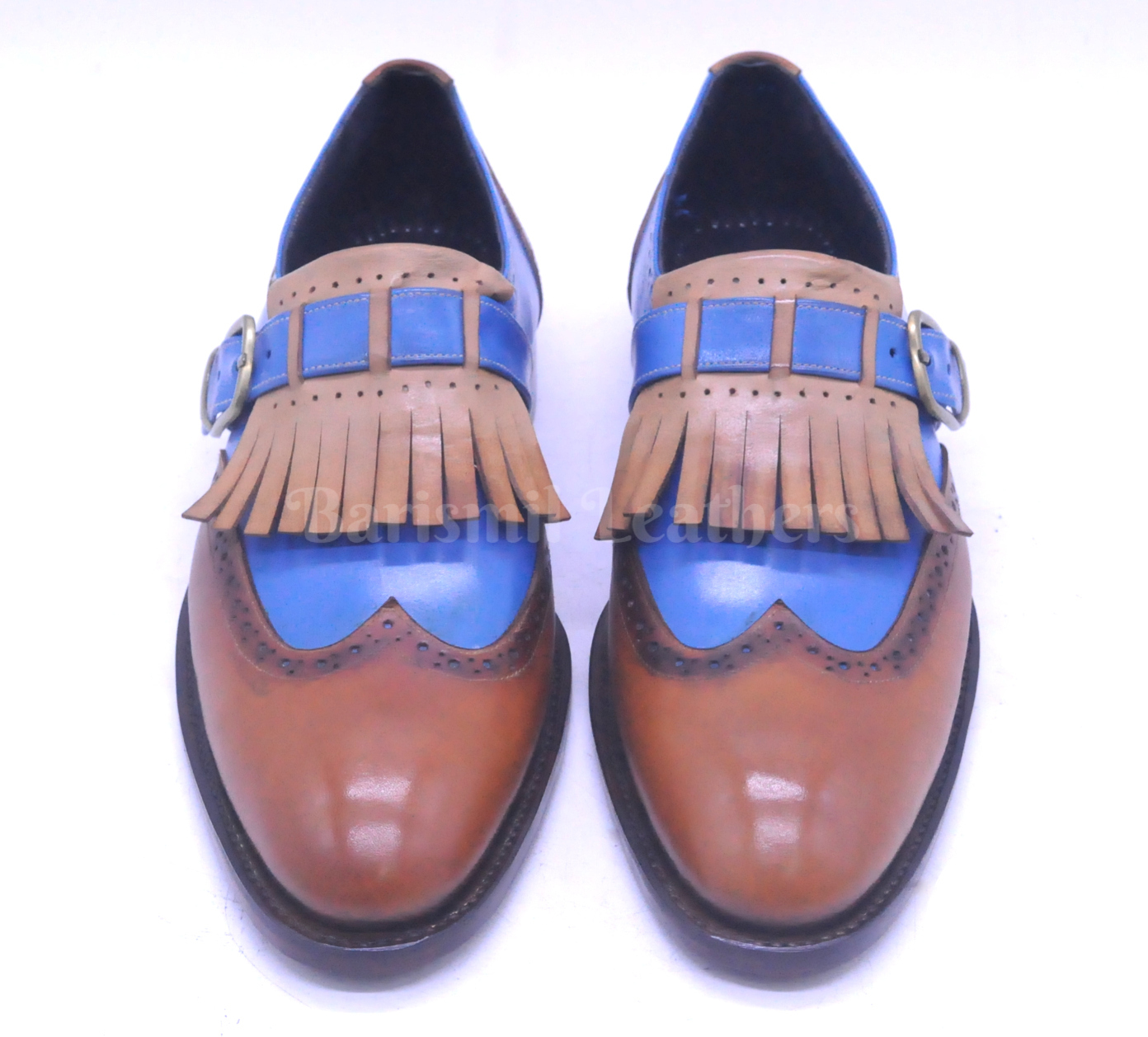 Handmade leather monk strap moccasins two tone fill loafers men dress shoes.