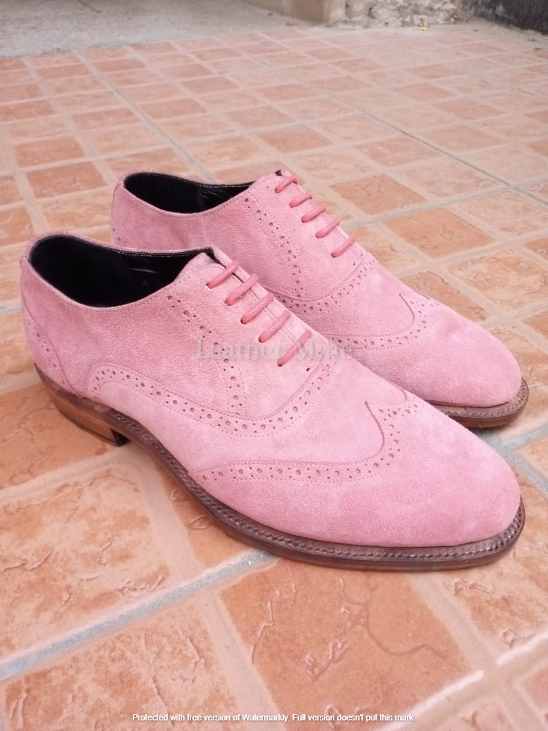 Leather Dress Shoes Men's Handmade Pink Suede Brogue Formal Shoes