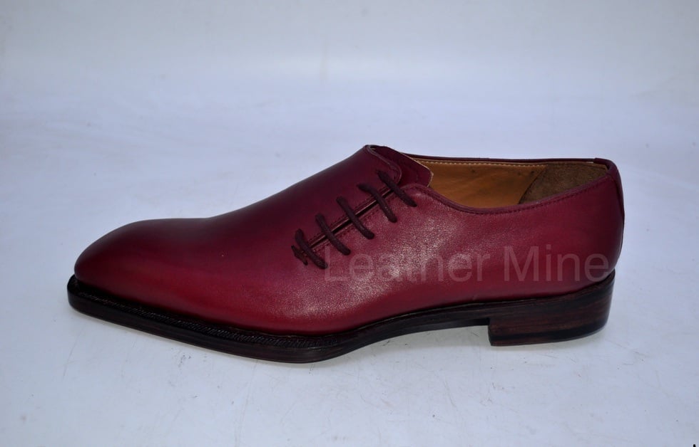 Handmade Burgundy Side Laces Leather Oxford Dress Shoes for Men