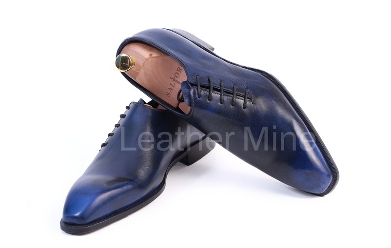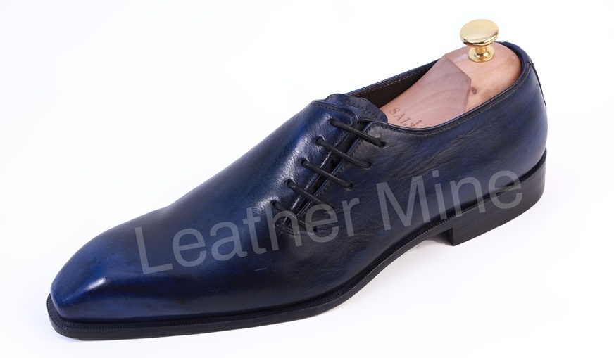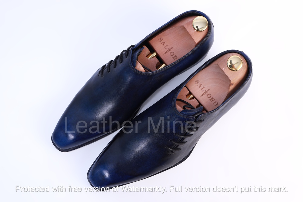 Blue Patina Side Lace Oxfords Dress shoes Men's, Handmade Leather Shoes