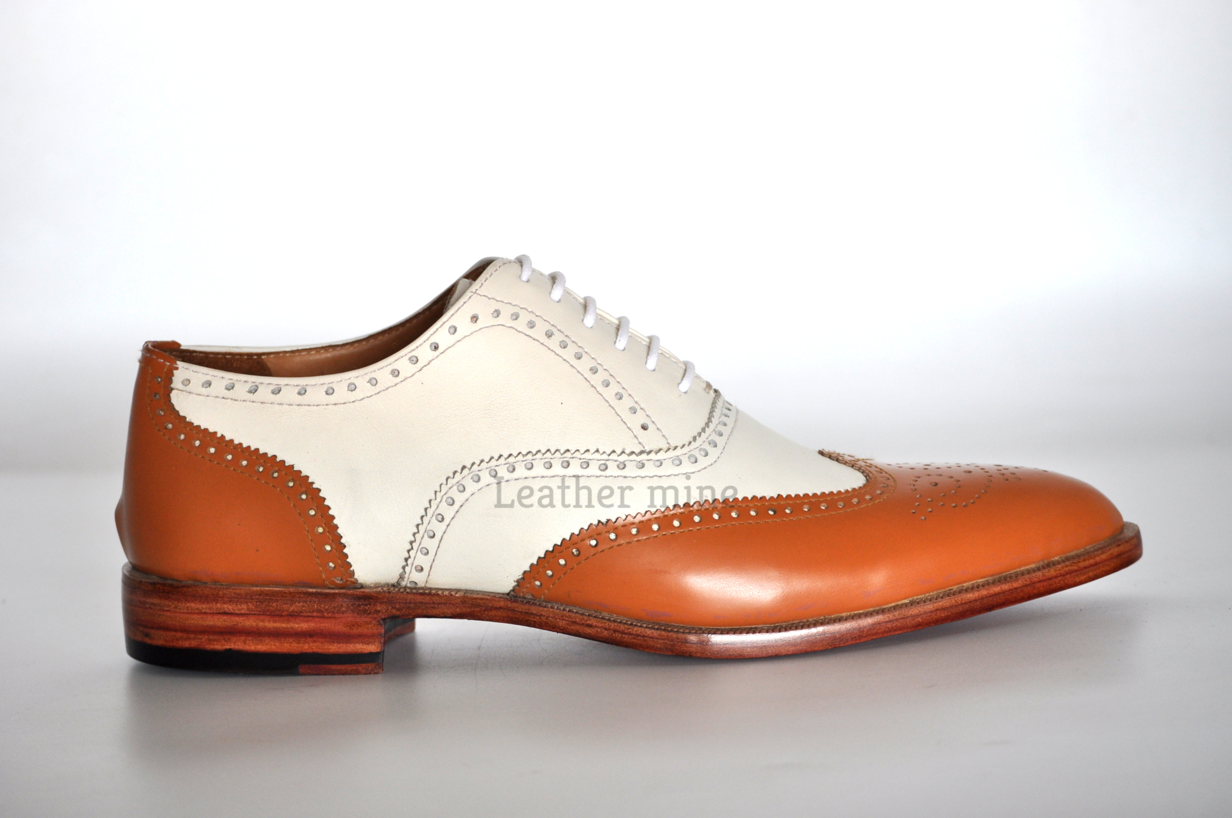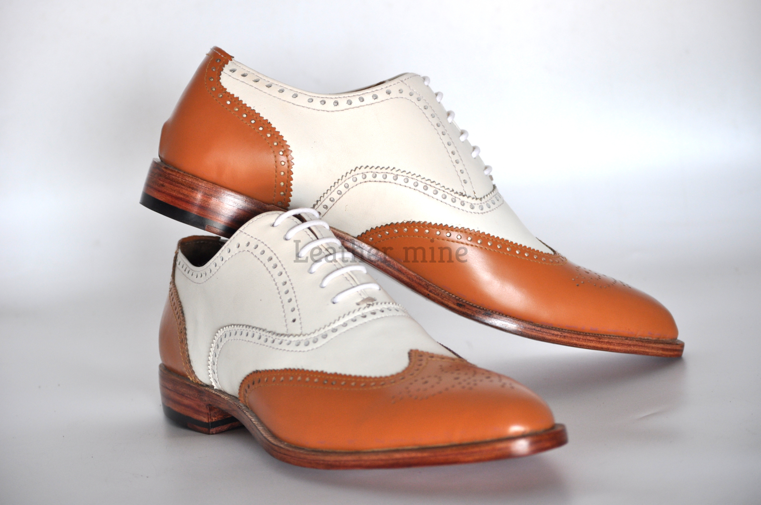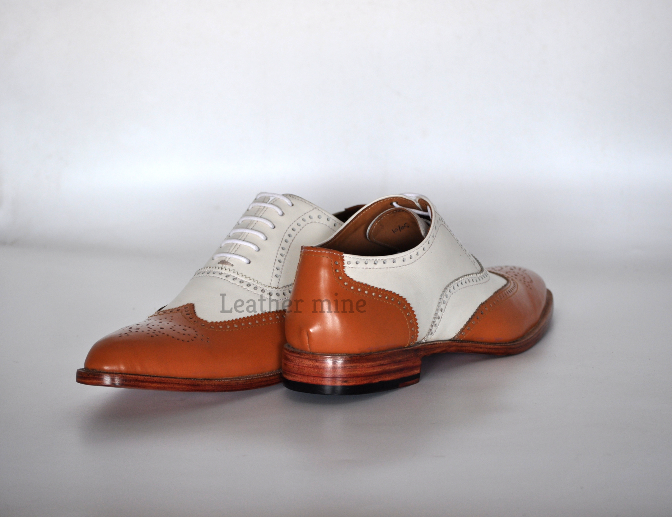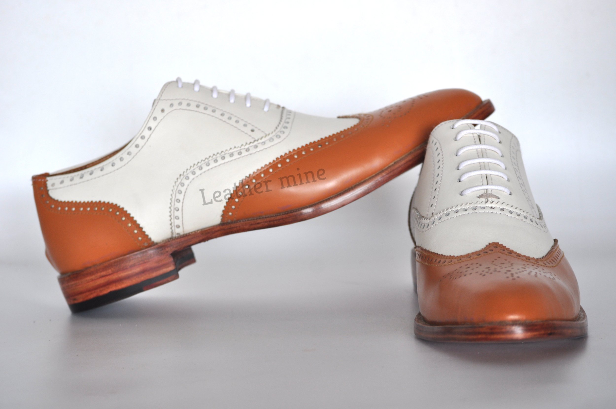 Two Tone Handmade Wingtips and Brogue Leather Men's Shoes, Formal Shoes, Dress Shoes Lace Up Shoes