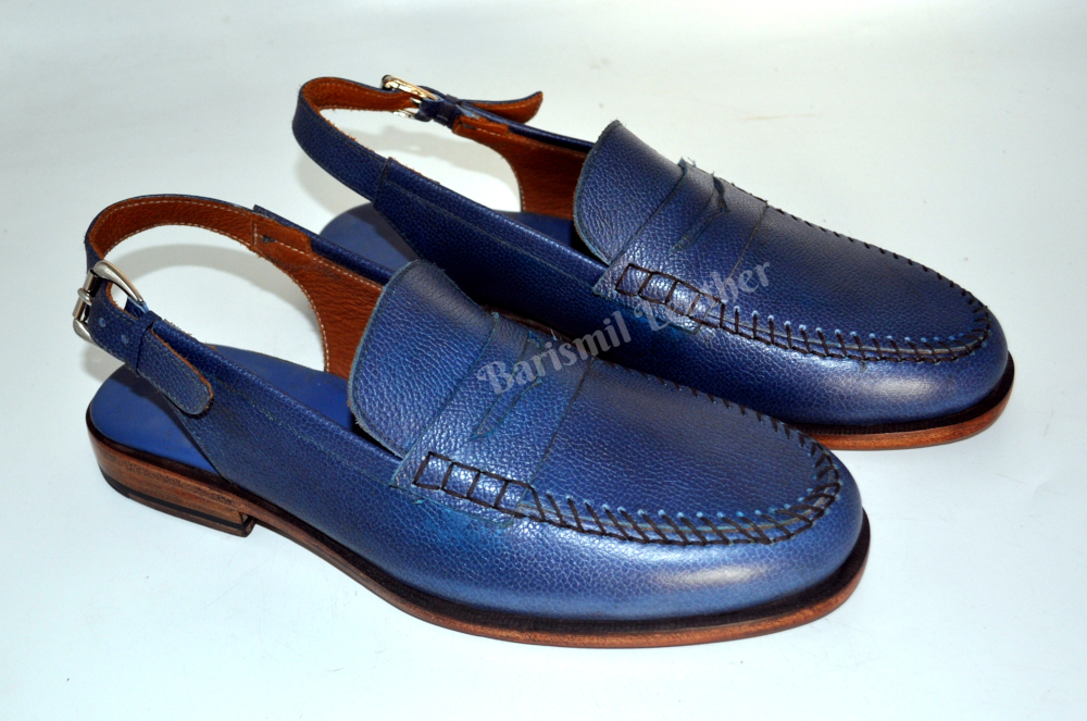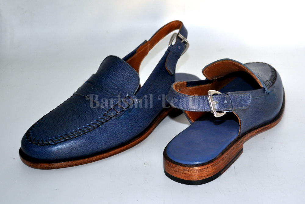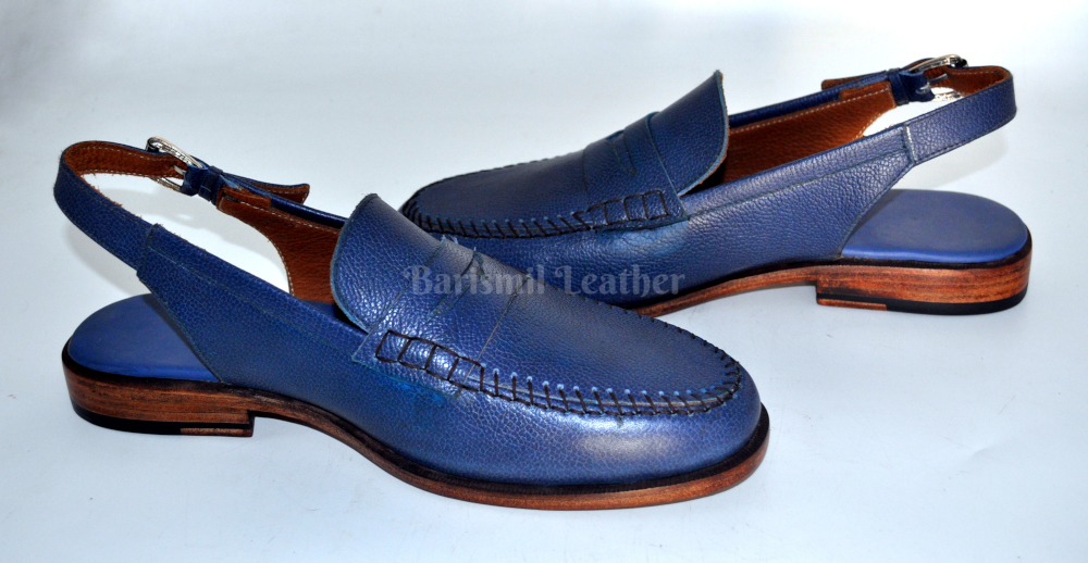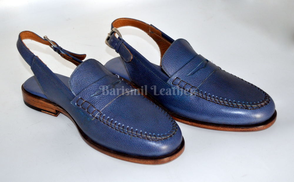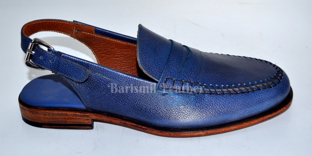 Men's Handmade Blue Grain Leather Sandals Dress Shoes
