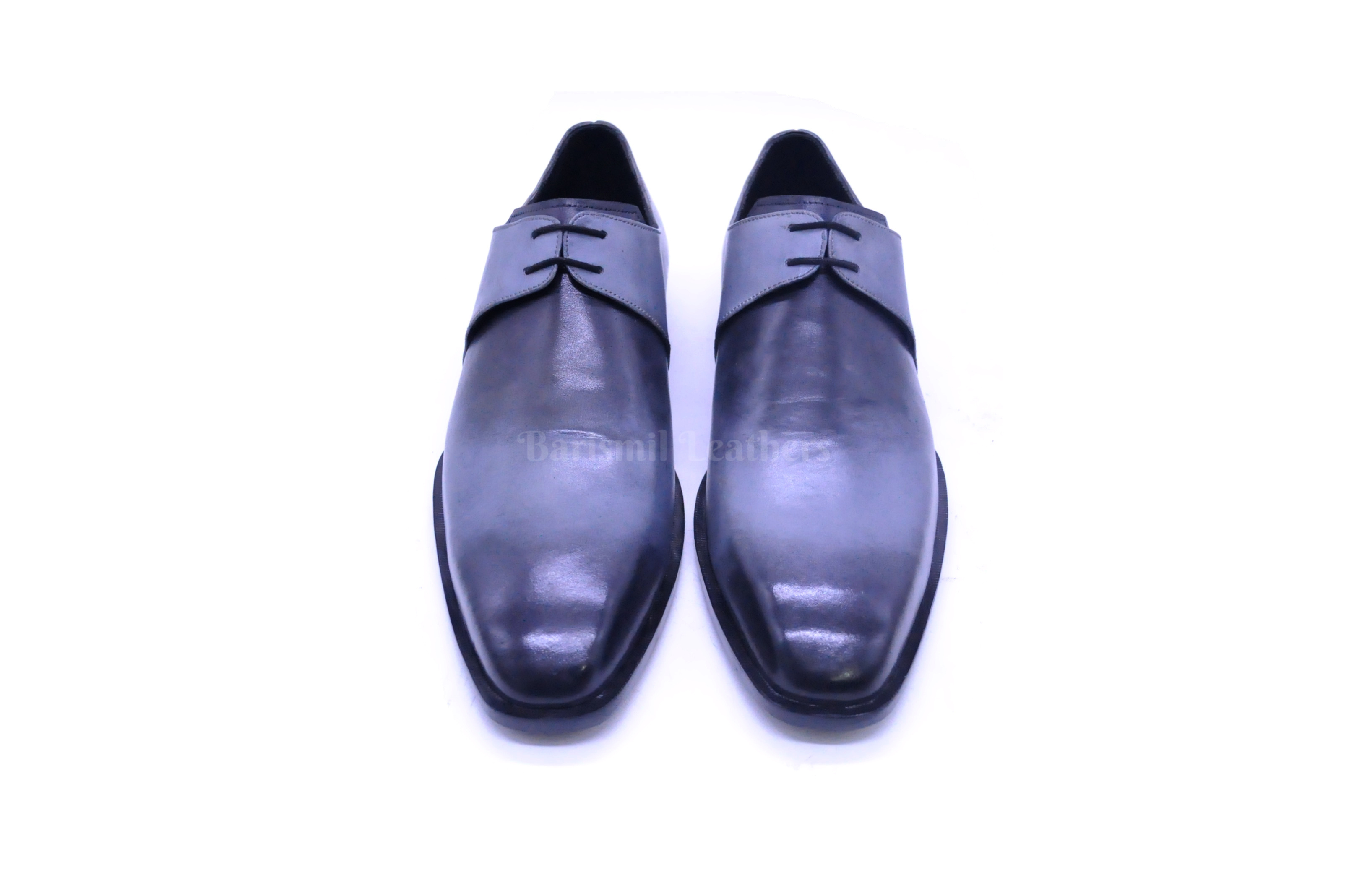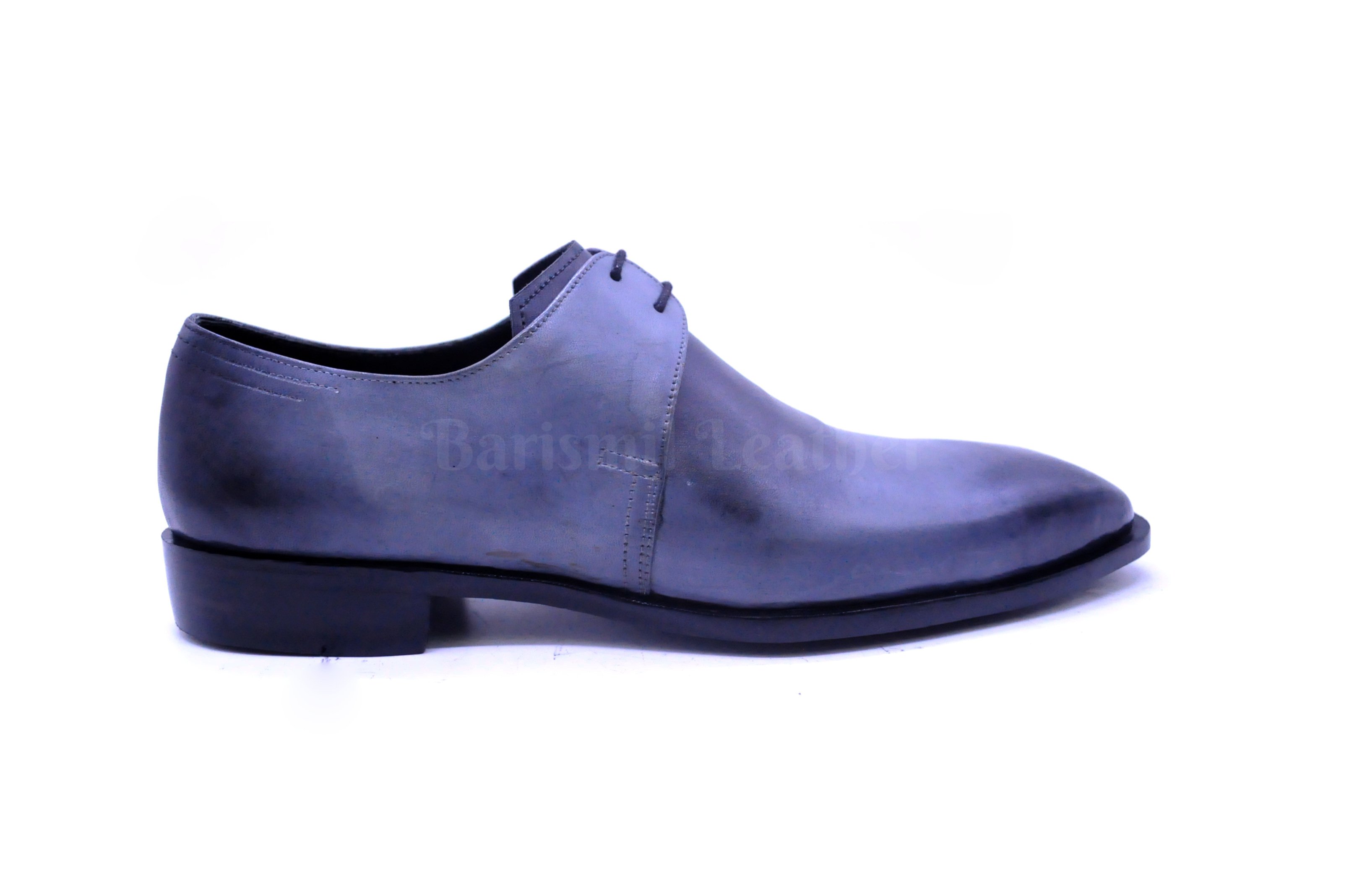Men's Leather Handmade Gray Patina Derby Leather Dress Shoes For Men