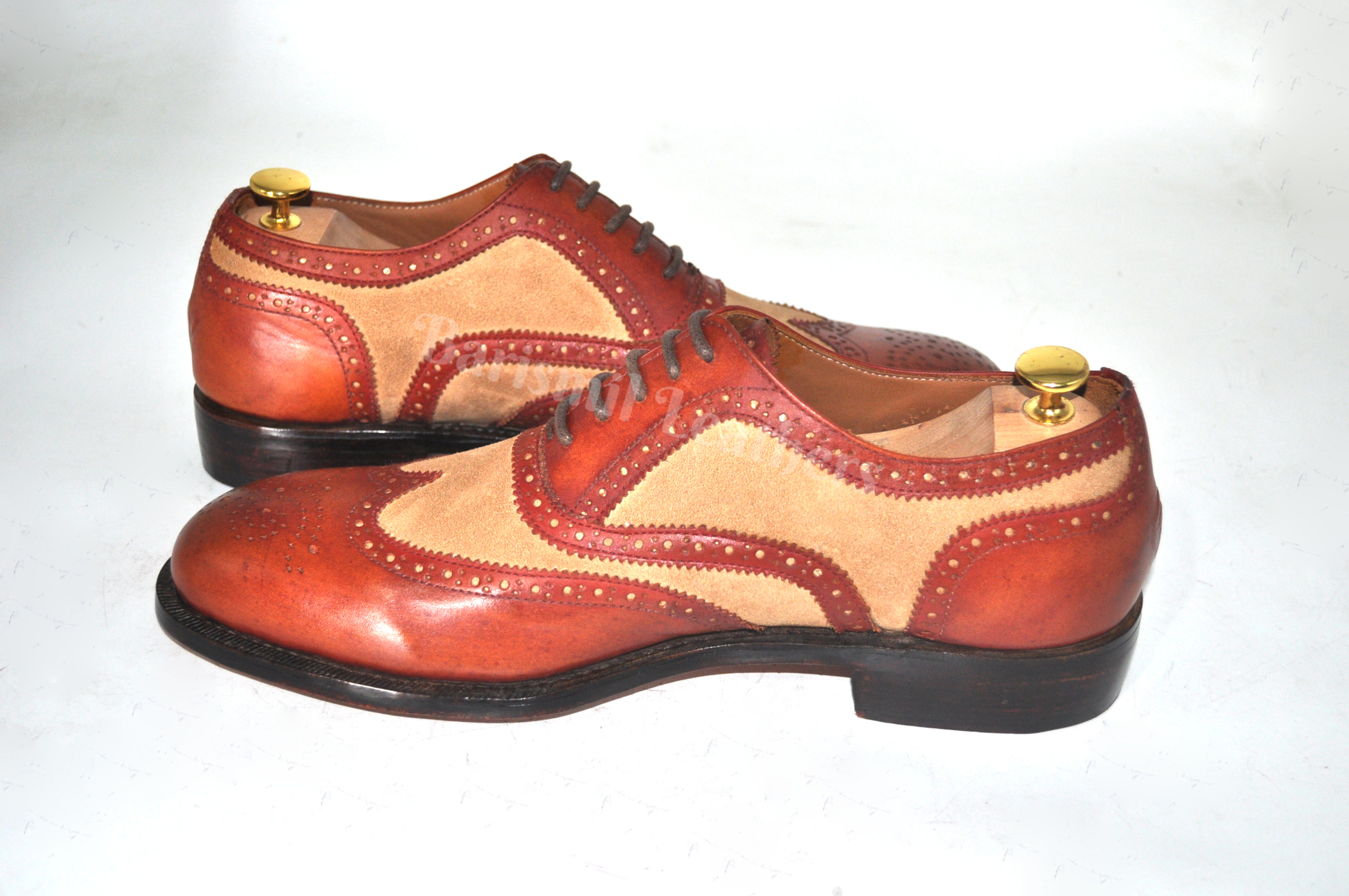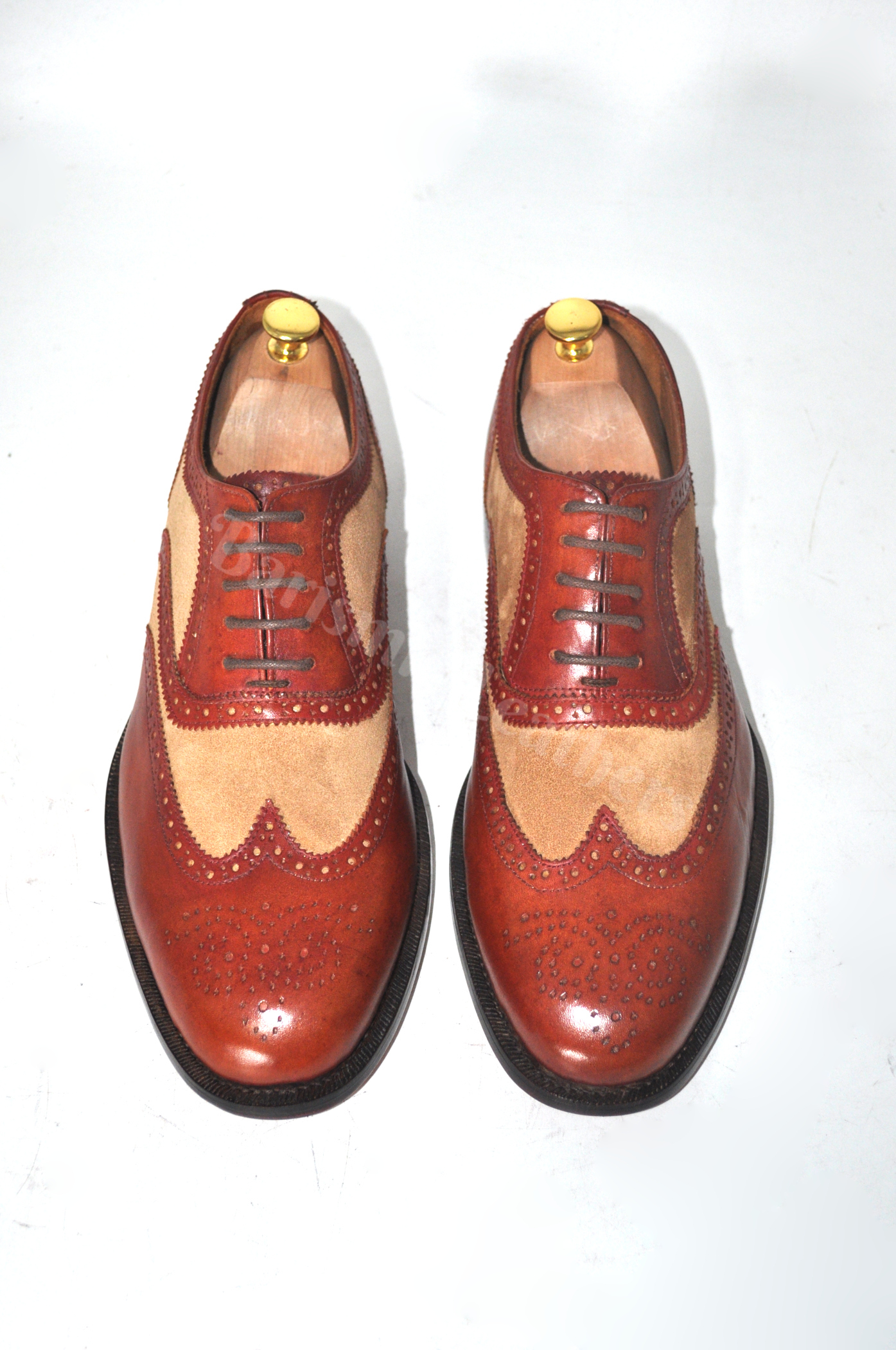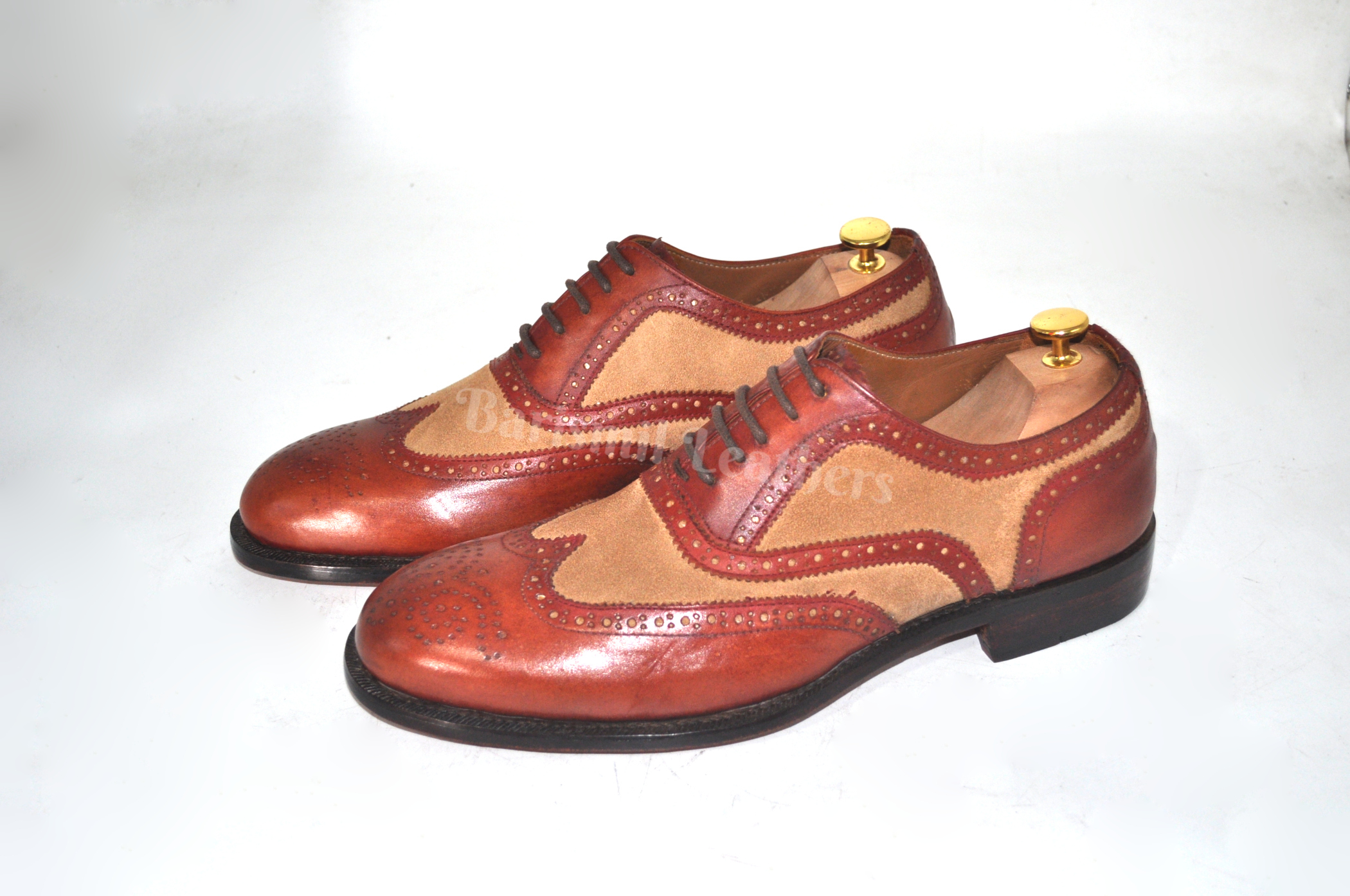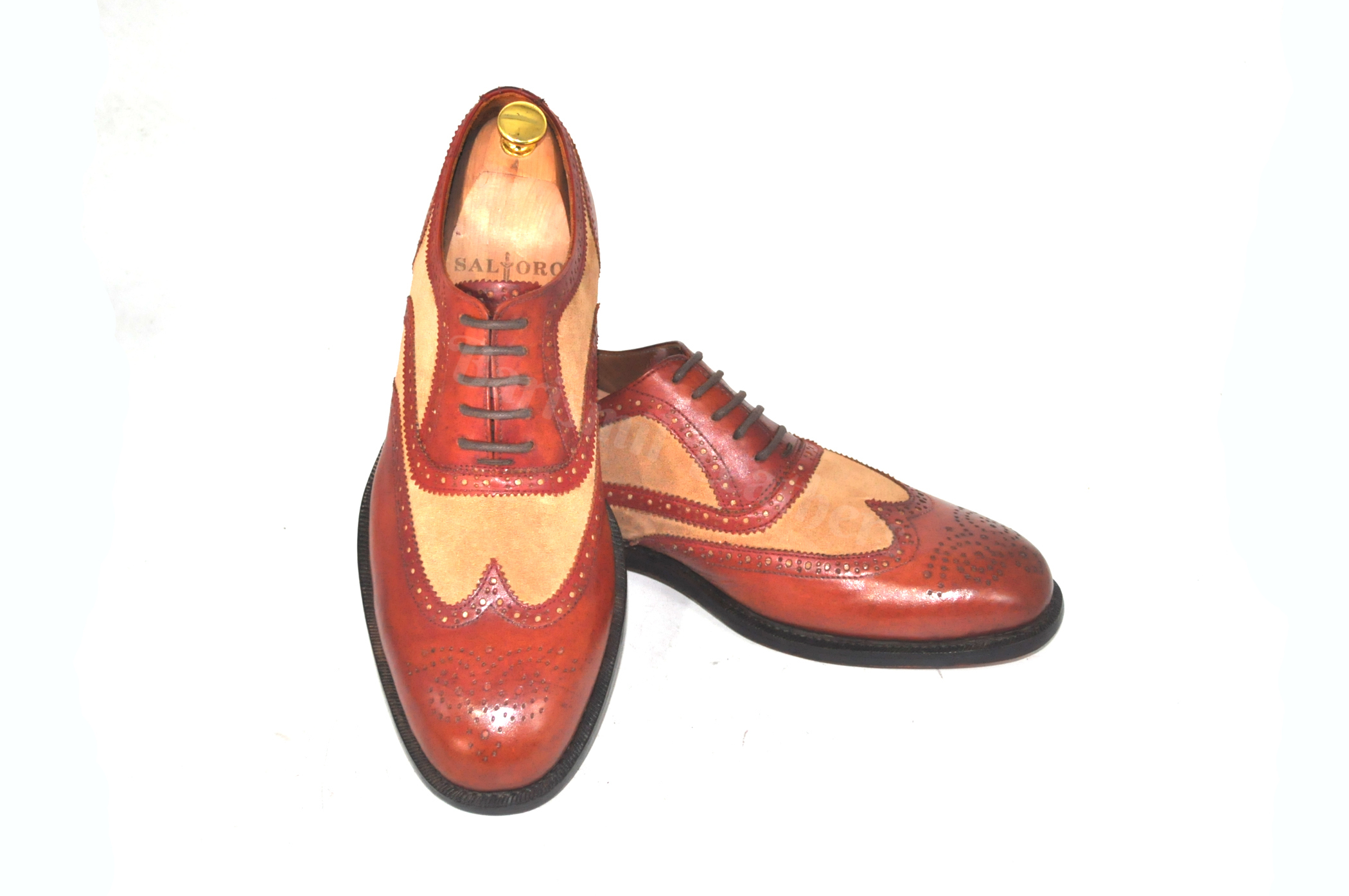 Men's Handmade Oxfords Lace Up Two Tone Leathers Dress Shoes Formal Shoes for Men.