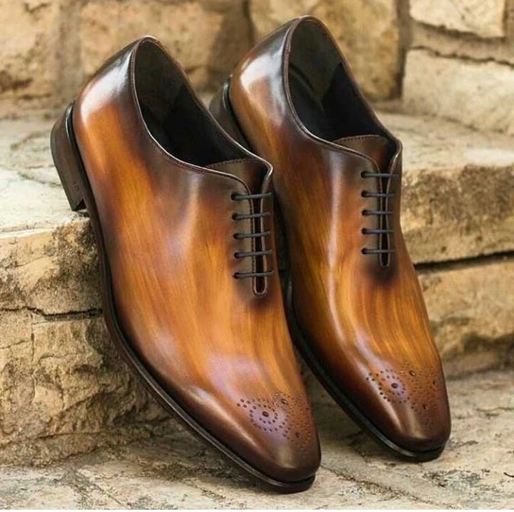 Handmade leather whole cut lace up oxfords brown patina leather dress formal shoes for men.