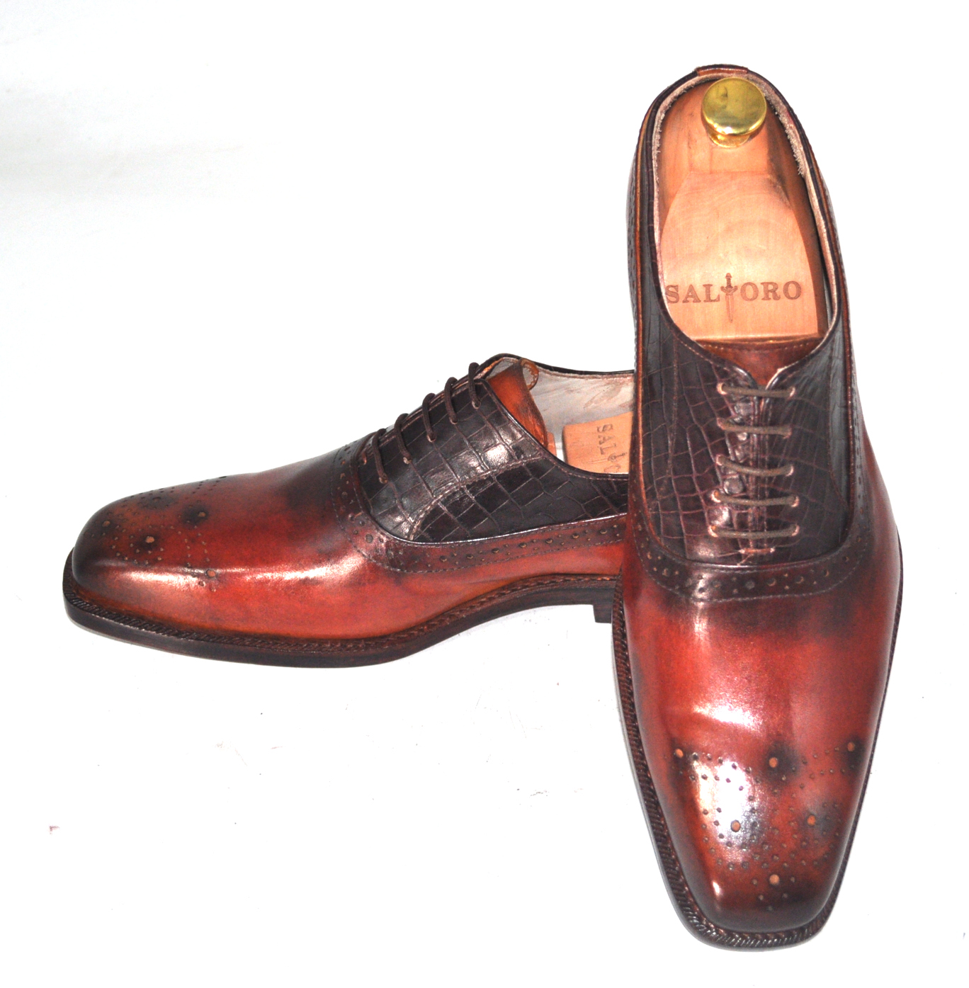 Handmade oxford brown patina tow tone lace up men dress shoes.