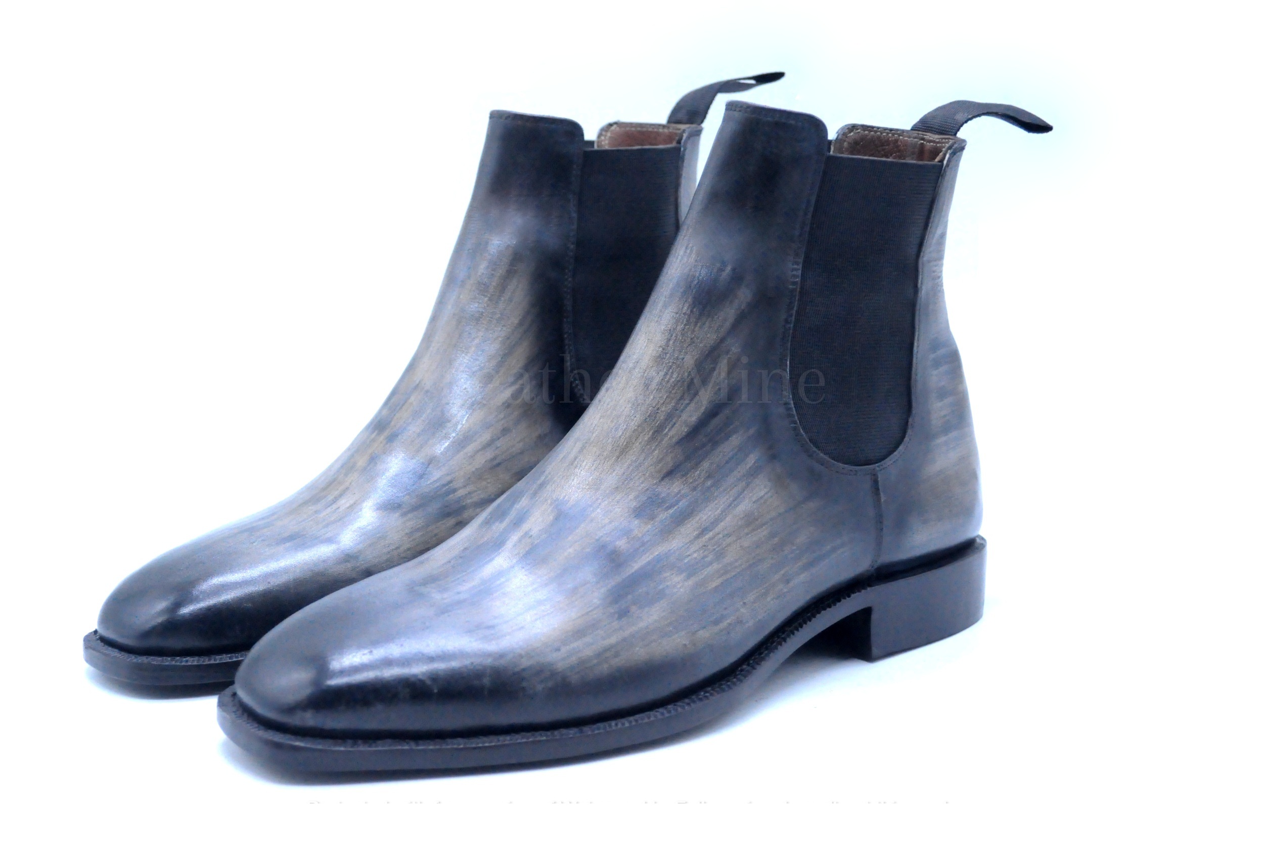 Handmade Patina Leather Chelsea Shoes, Leather Dress Boots Mens