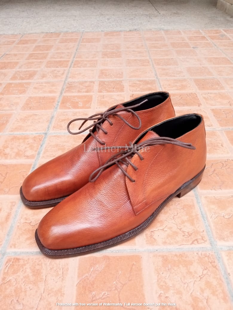 Handmade Tan Grains Chukka Dress Boots, Genuine Leather Formal Boots
