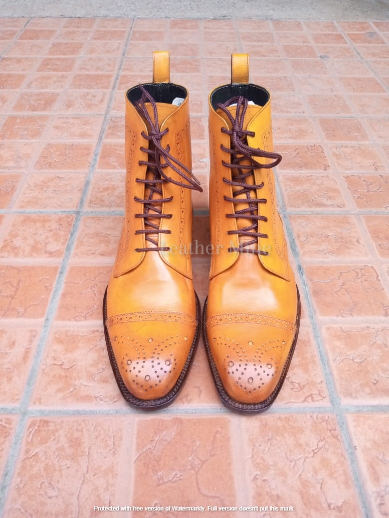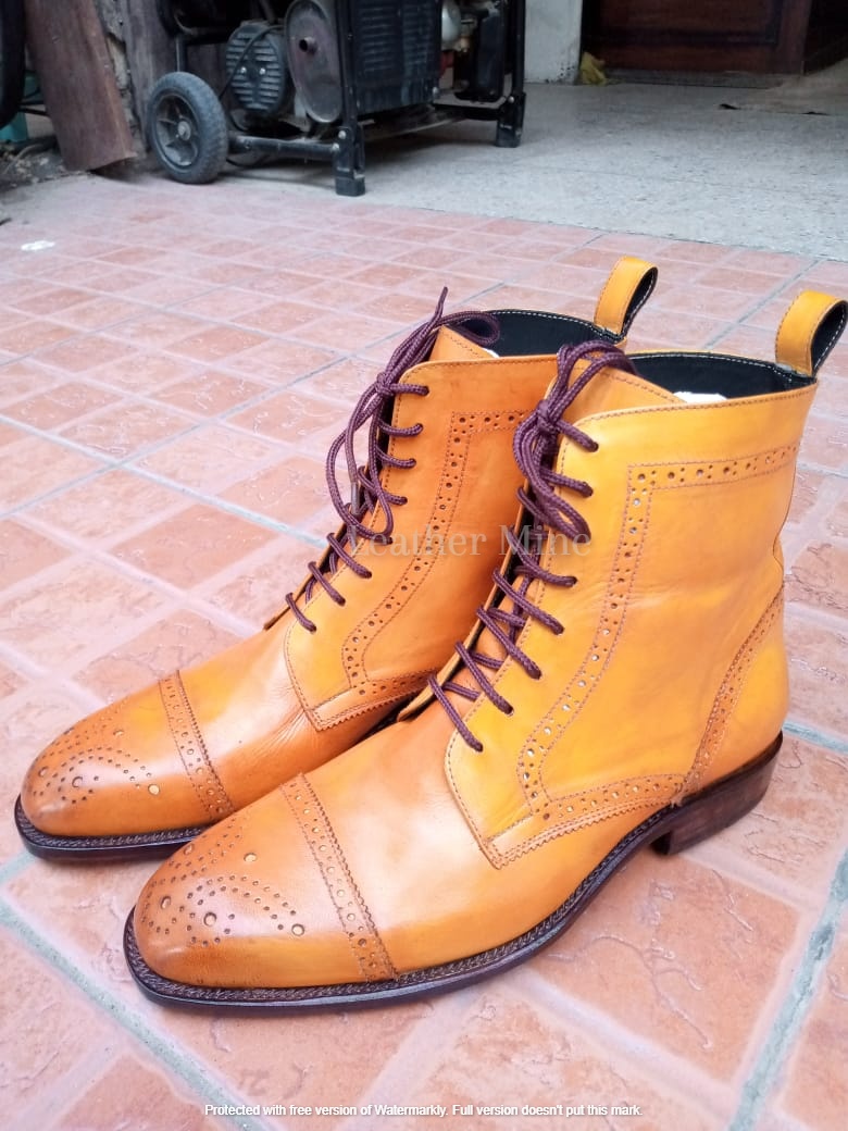Leather Dress Boots Men's Handmade Tan Lace up Formal Boots