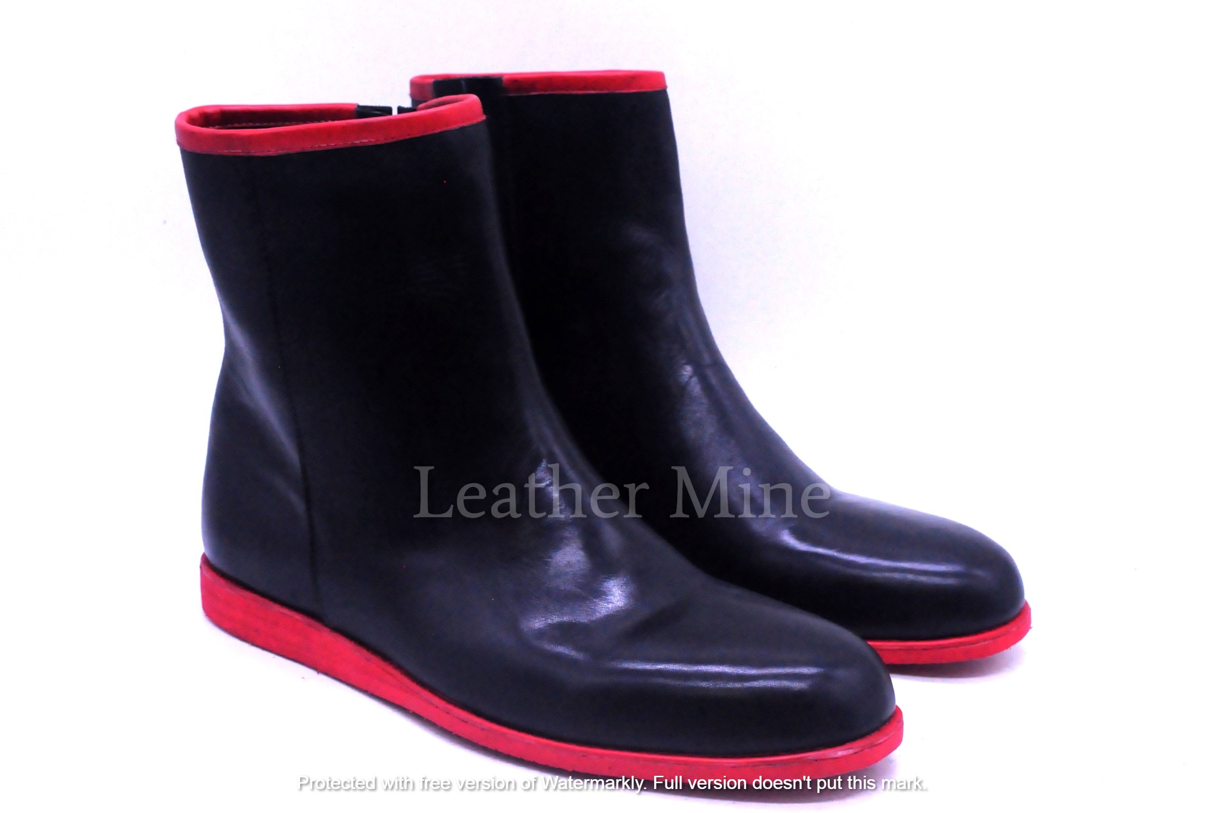 Leather Dress Boots Men's Handmade Black Zipper Boots
