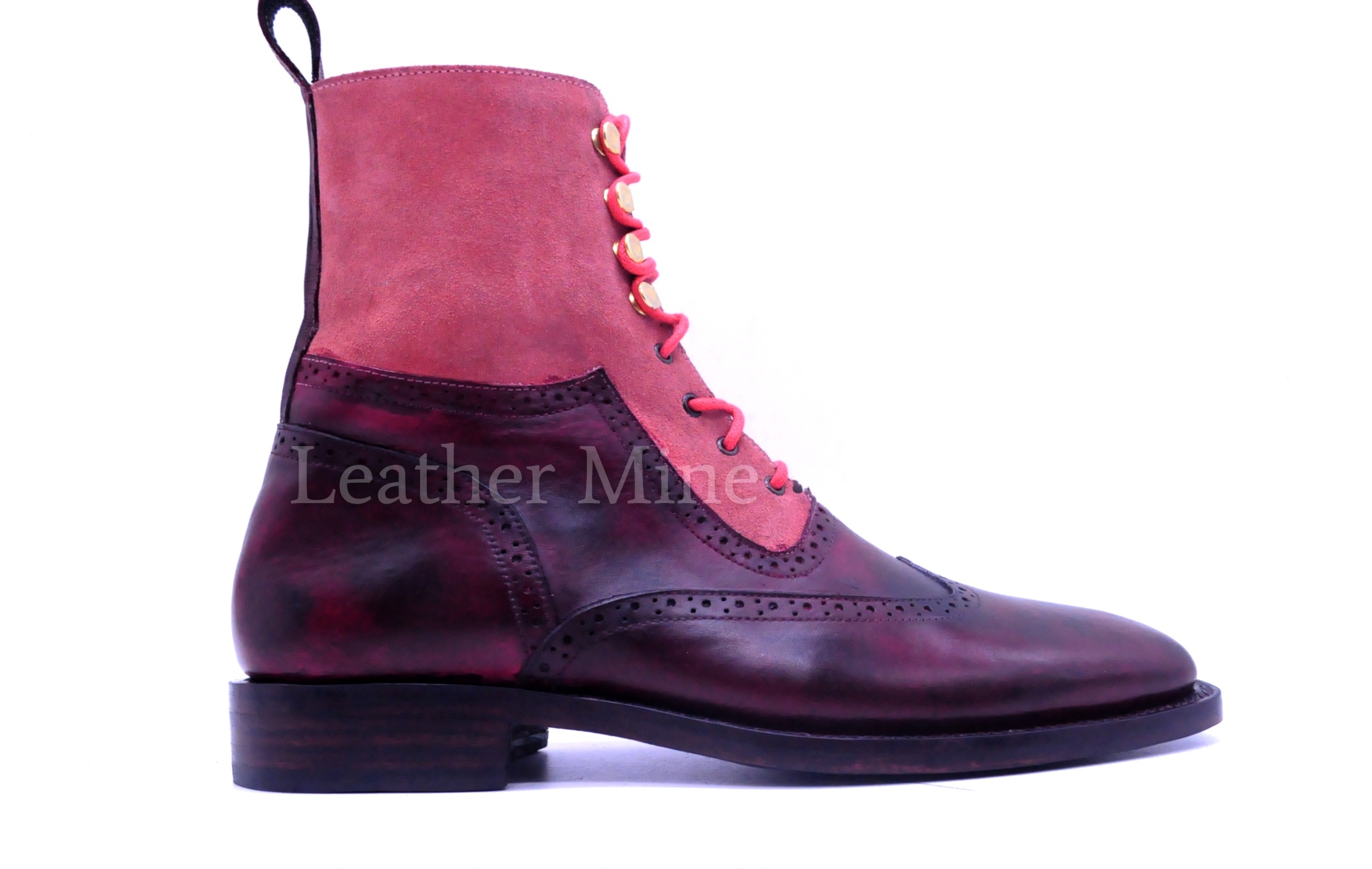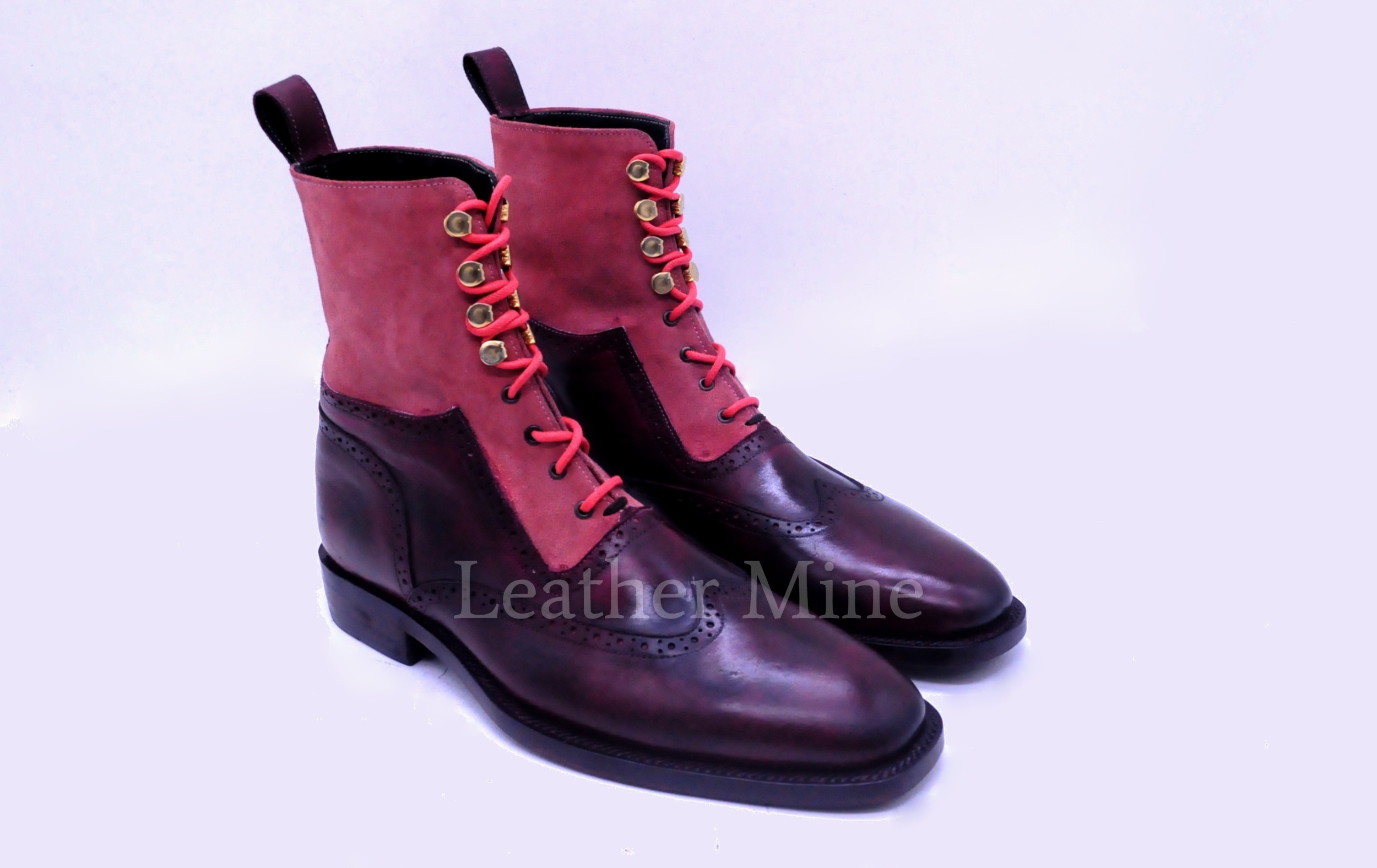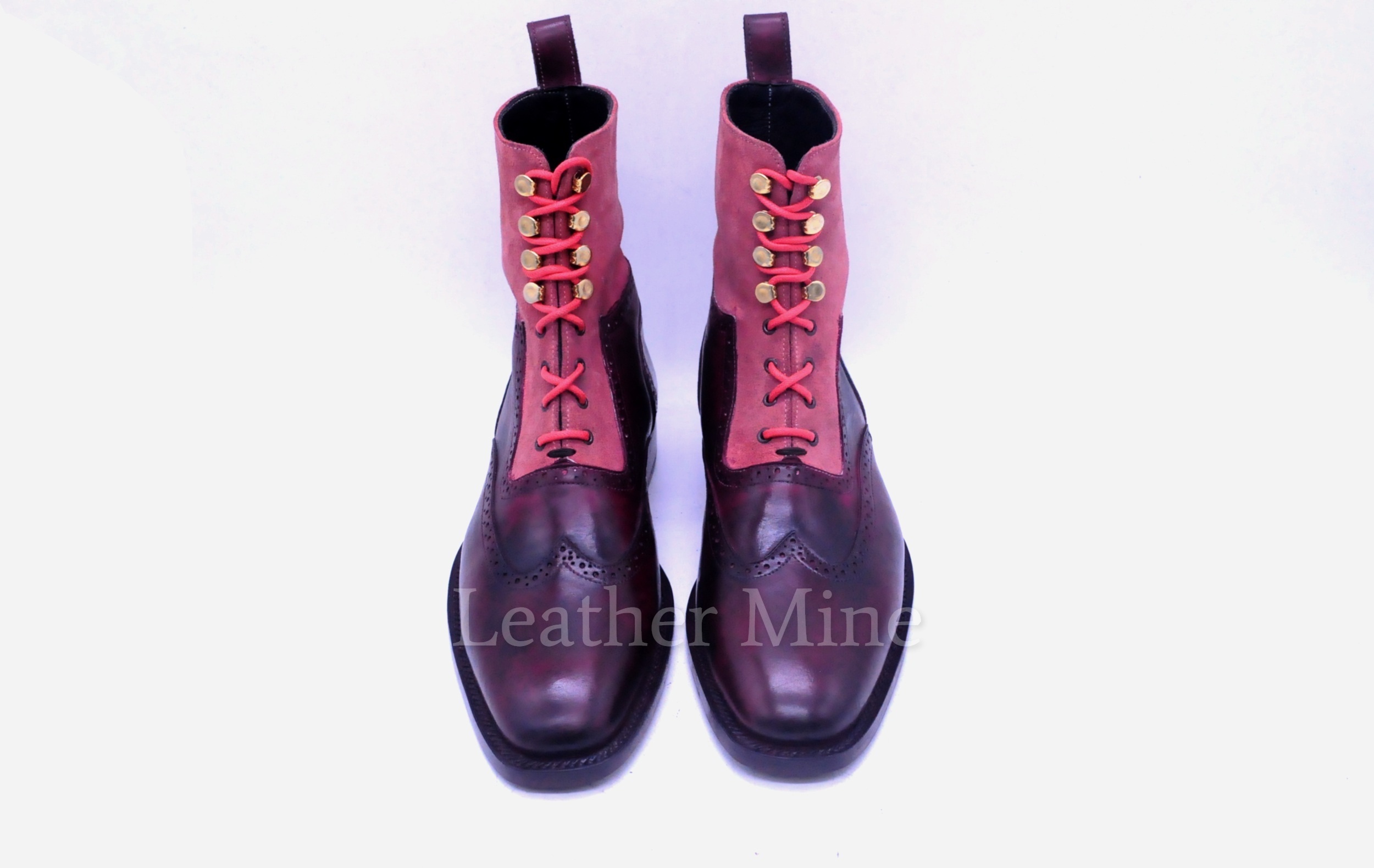 Men's Ox Blood Lace Up Boots, Handmade Genuine Leather Formal Boots