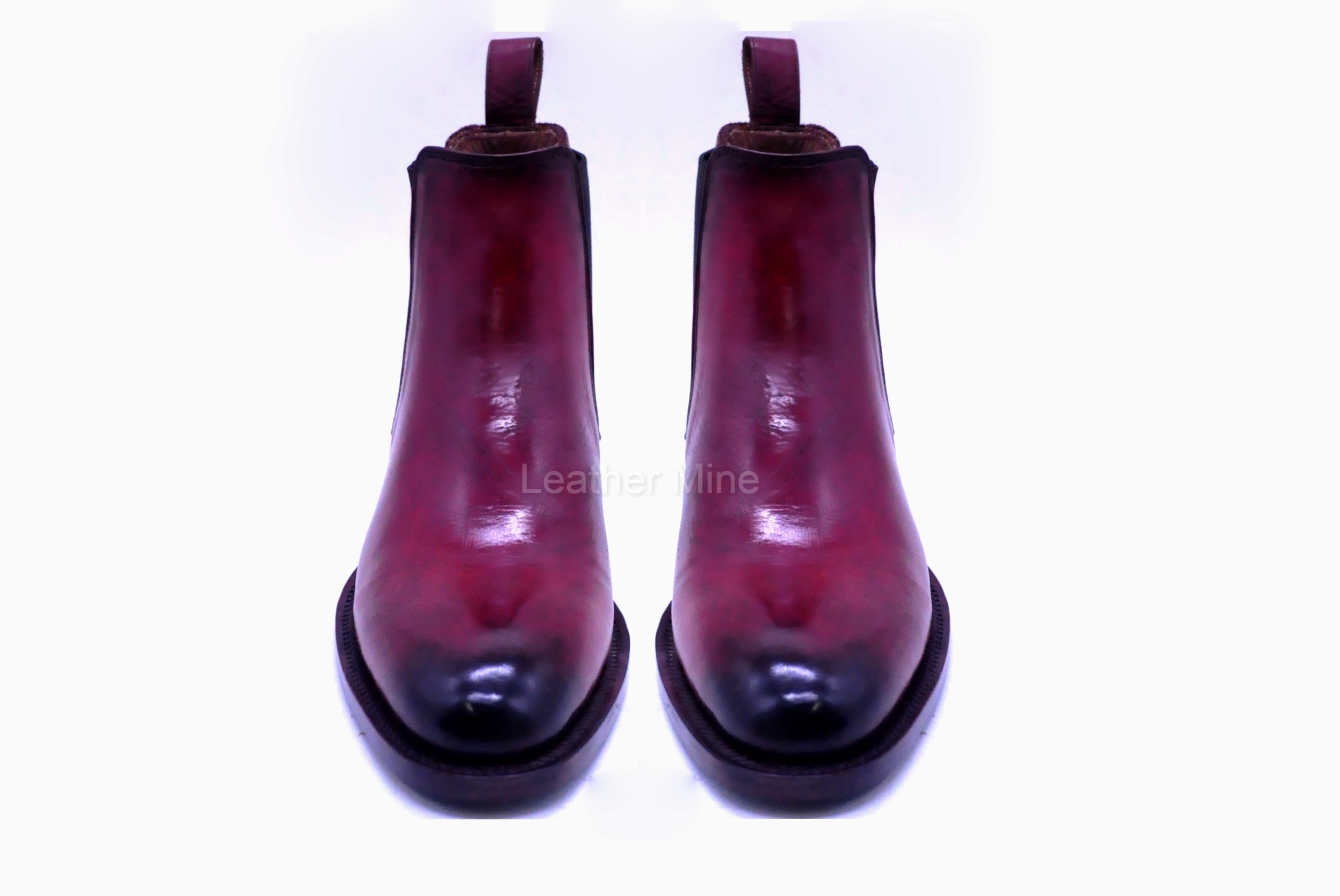 Burgundy Chelsea Leather Boots Men's, Handmade Leather Boots