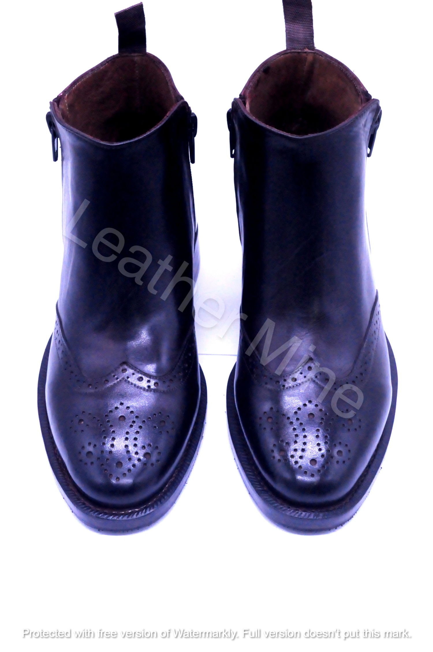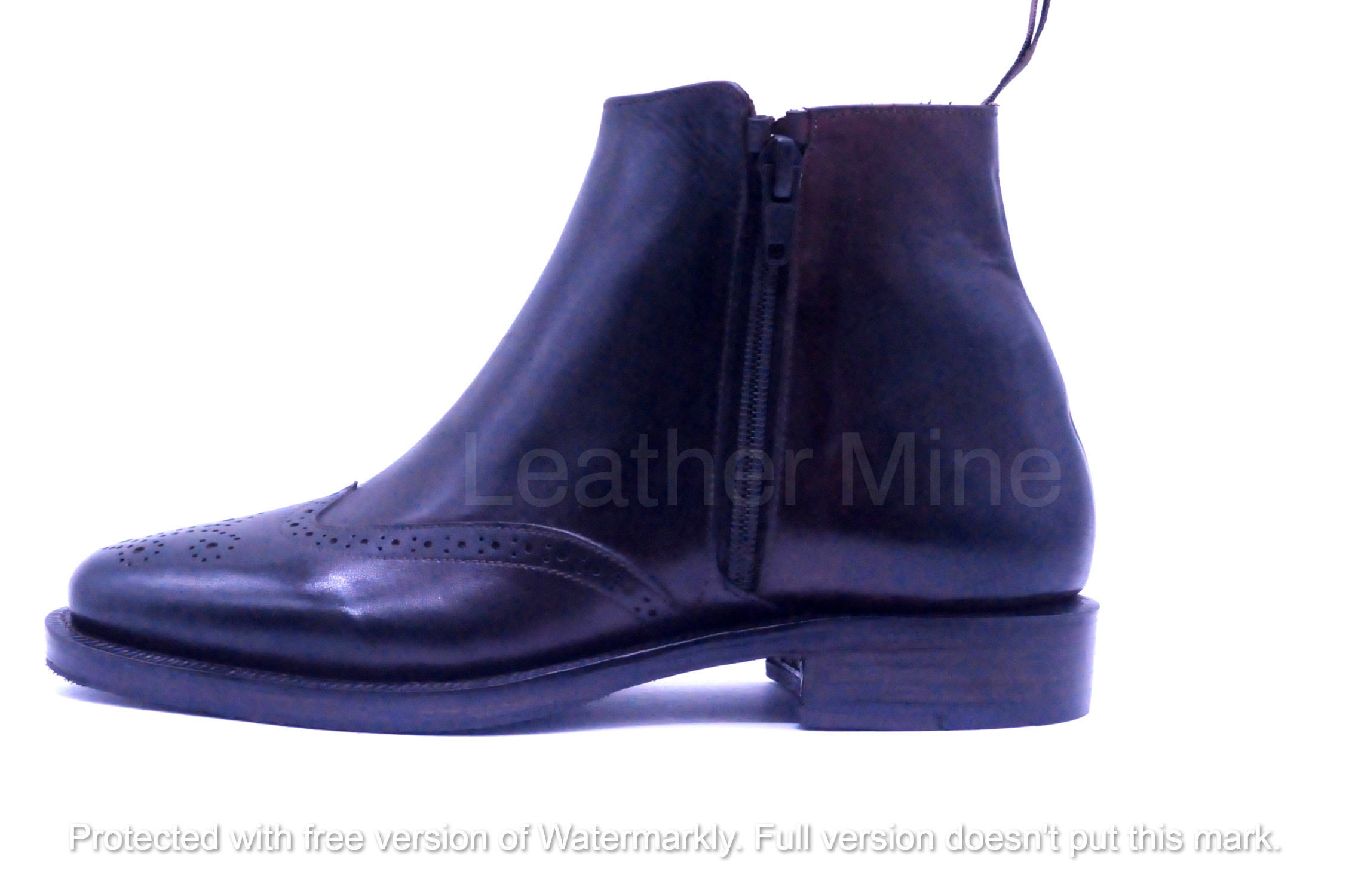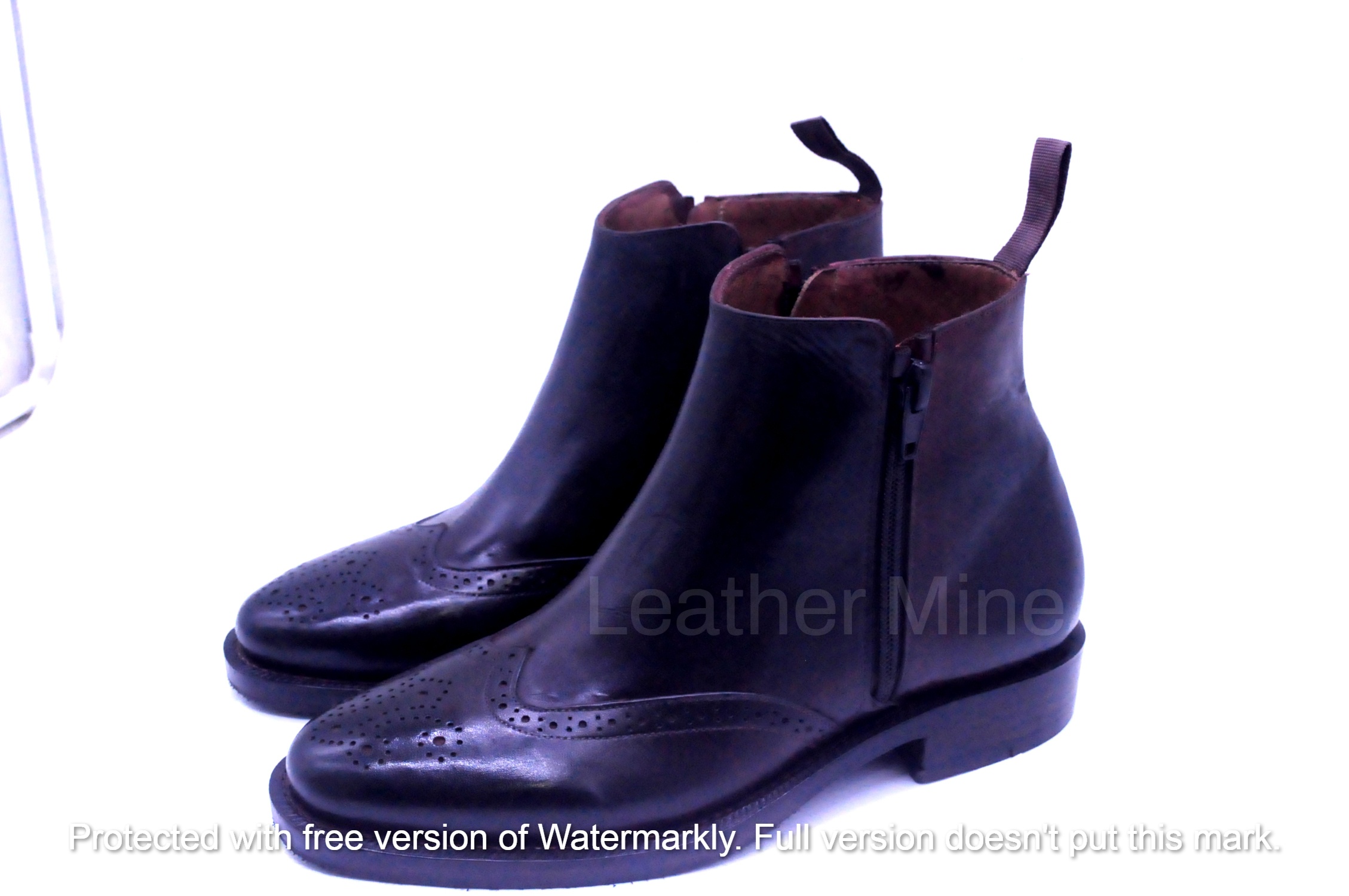 Wingtip Leather Chelsea Leather Black Boots Men's, Handmade Leather Boots