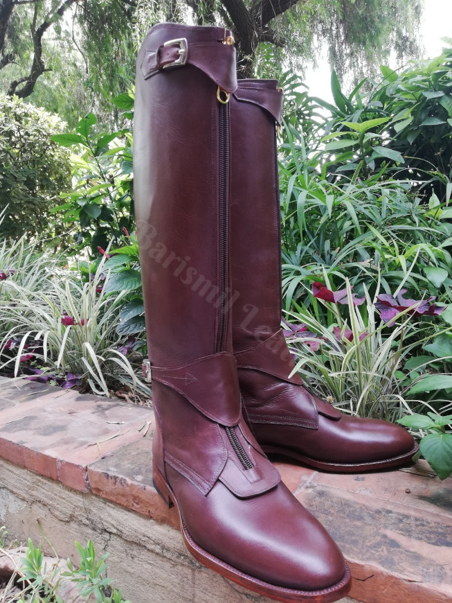 Handmade Leather Brown zipper Riding Boots Men's, Handmade Leather Boots