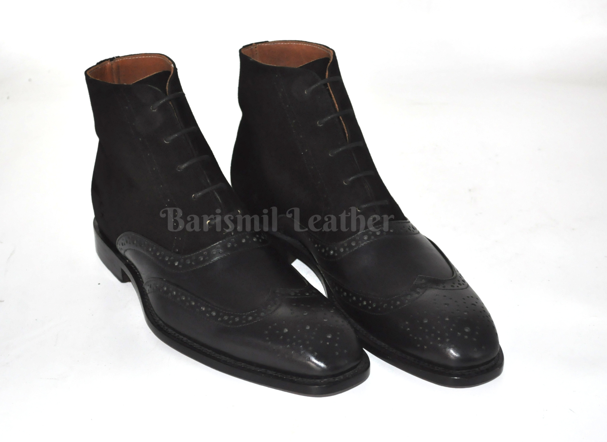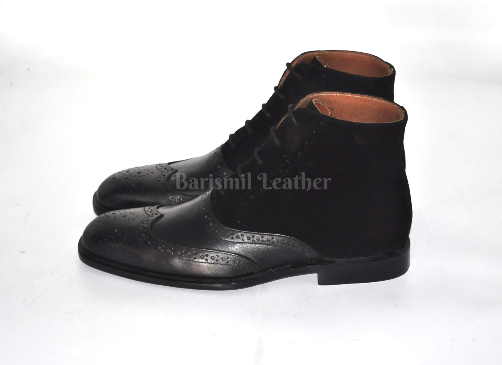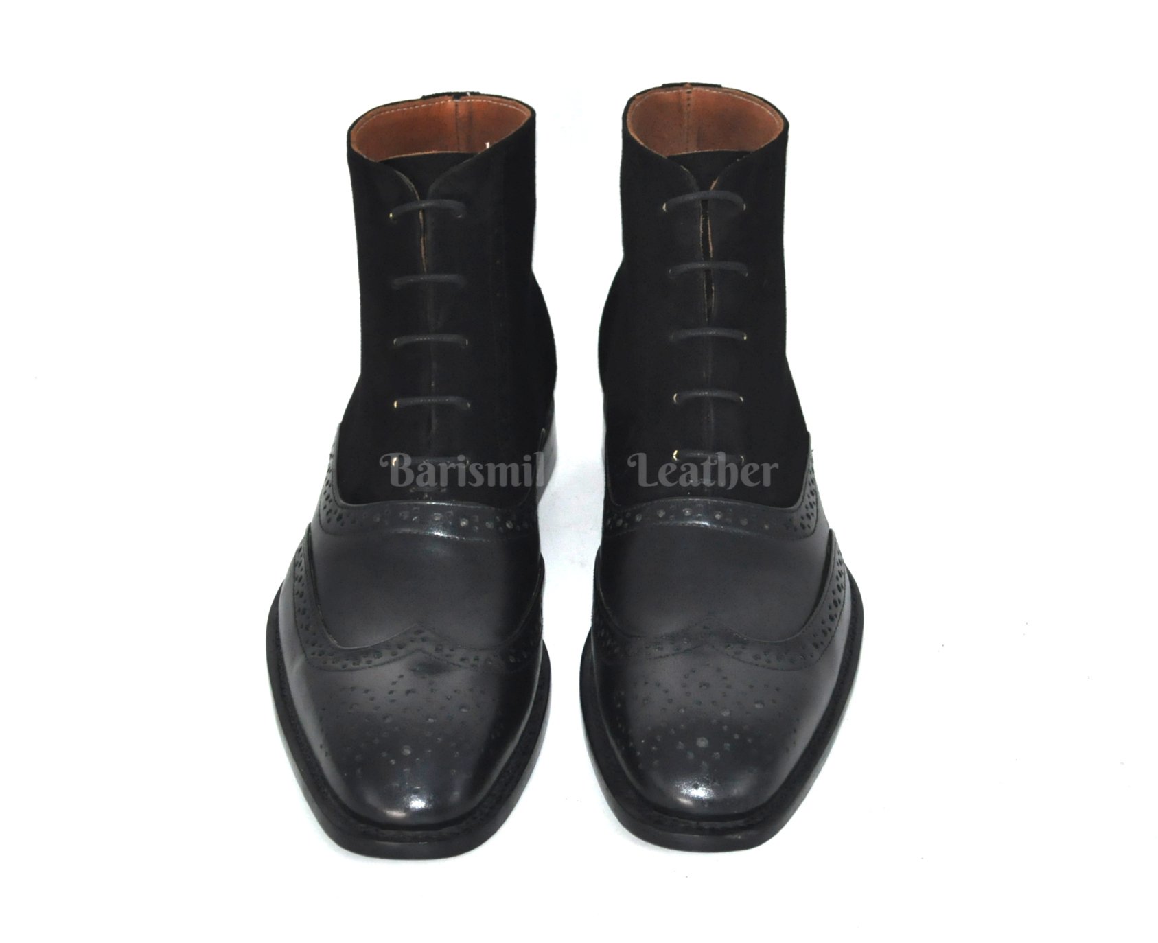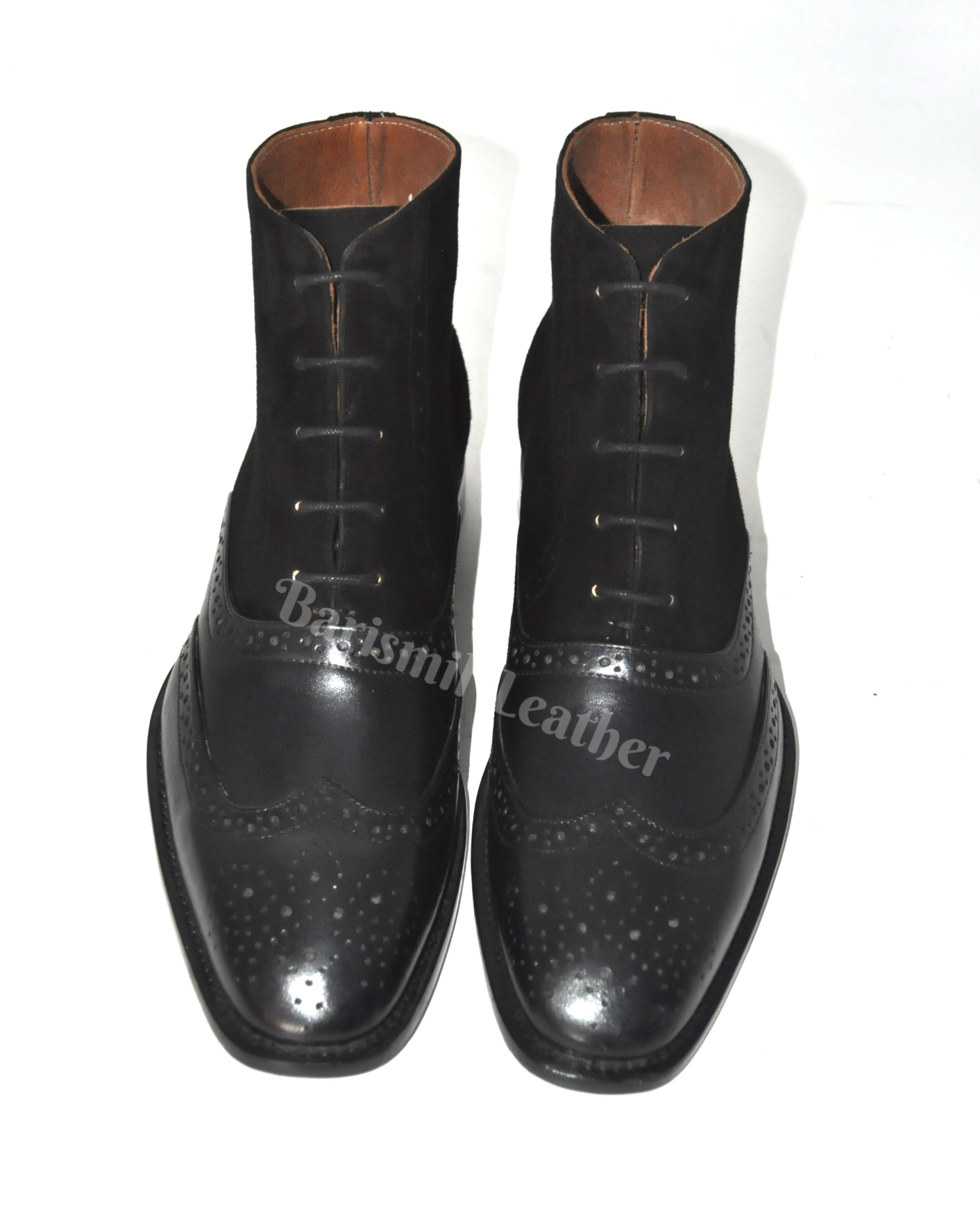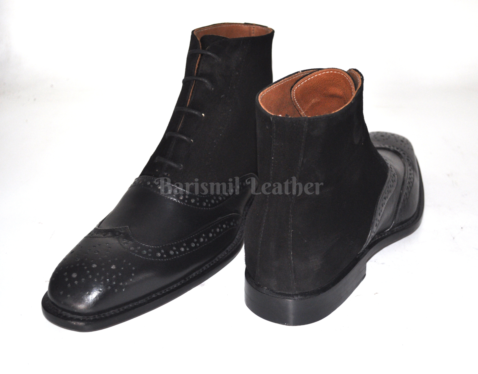 Men's Handmade Black Suede Leather Dress Boots, men's dress boots