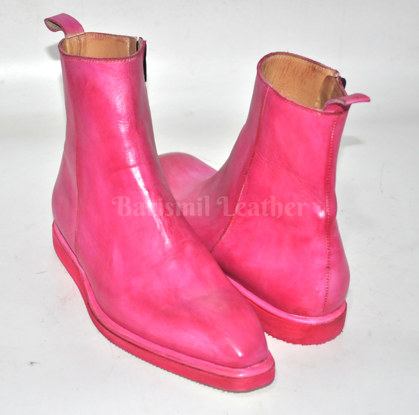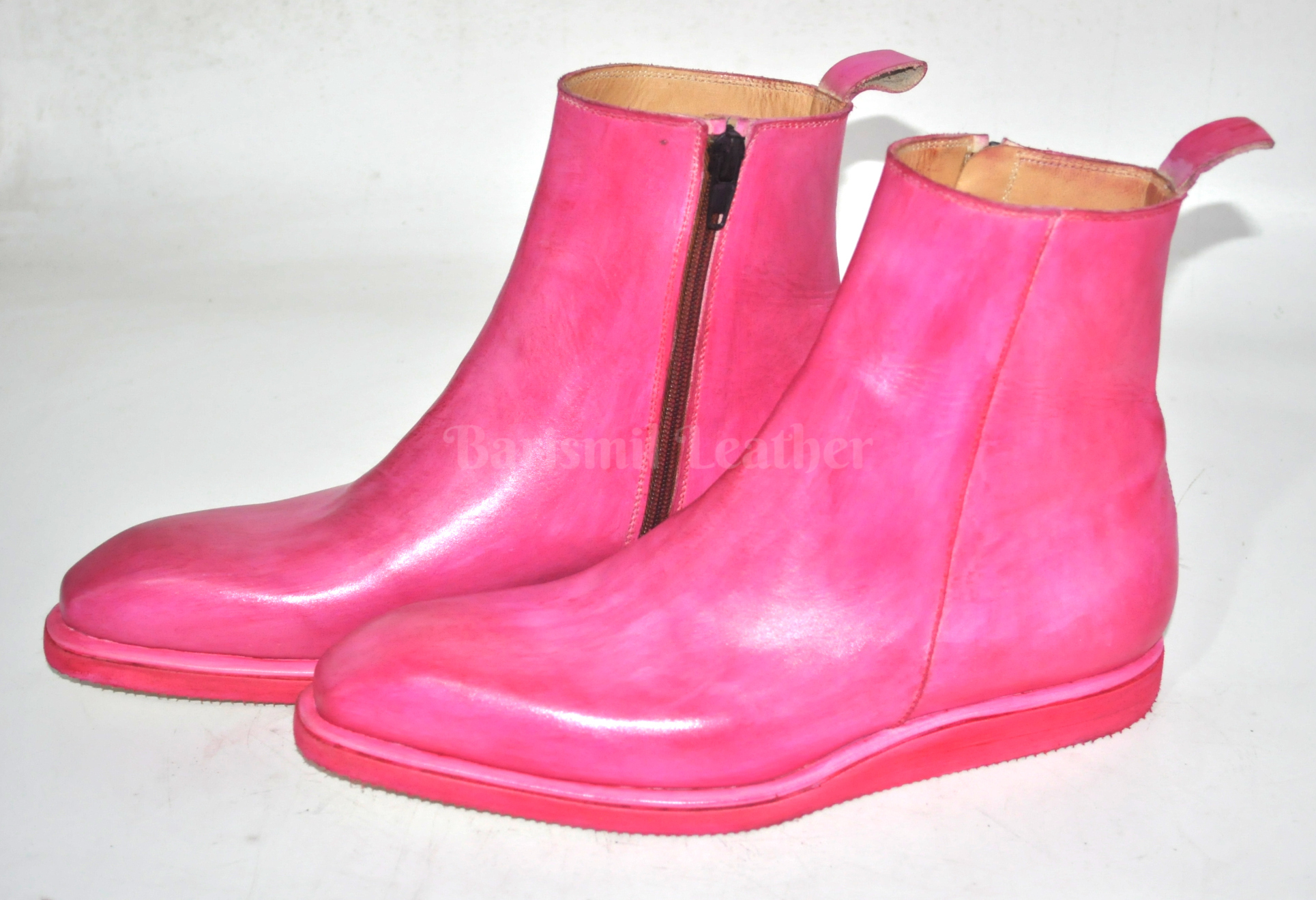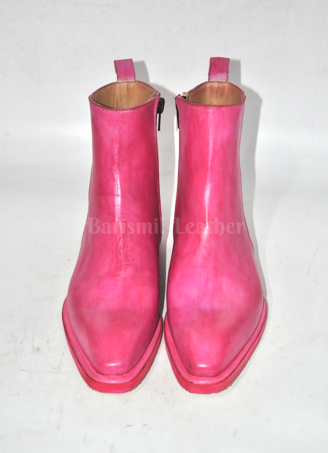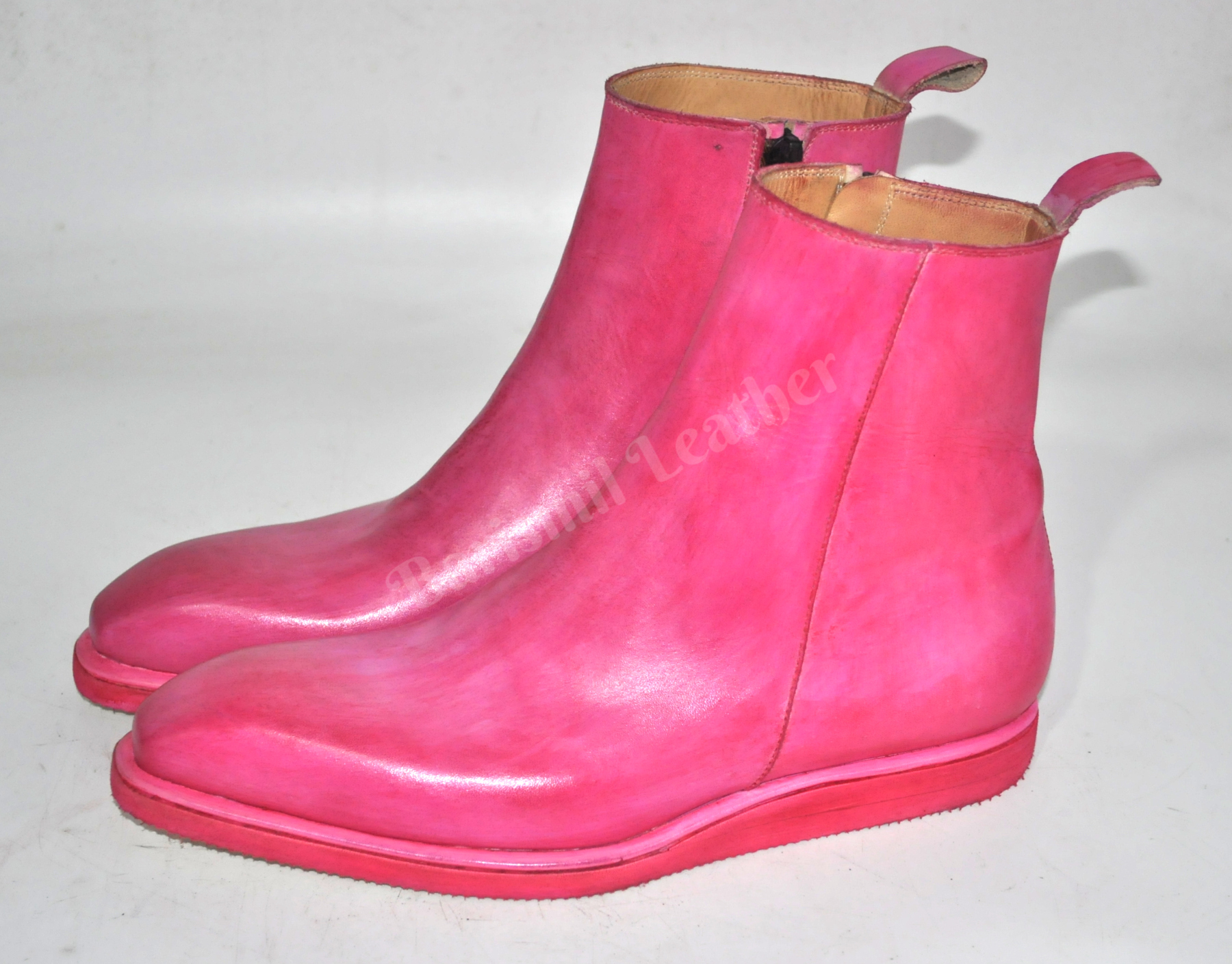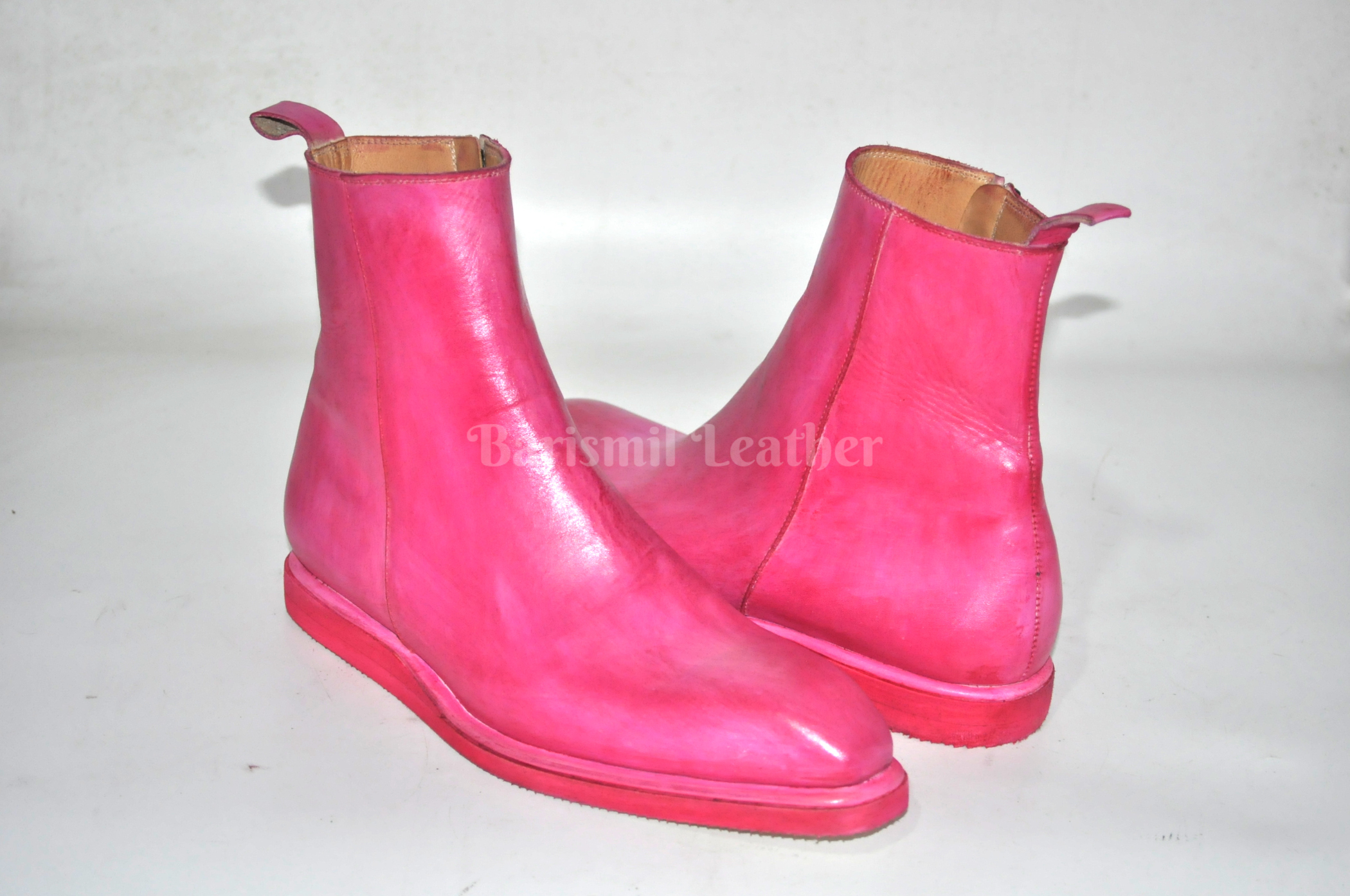 Leather Dress Boots Men's Handmade Pink Patina Custom Boots