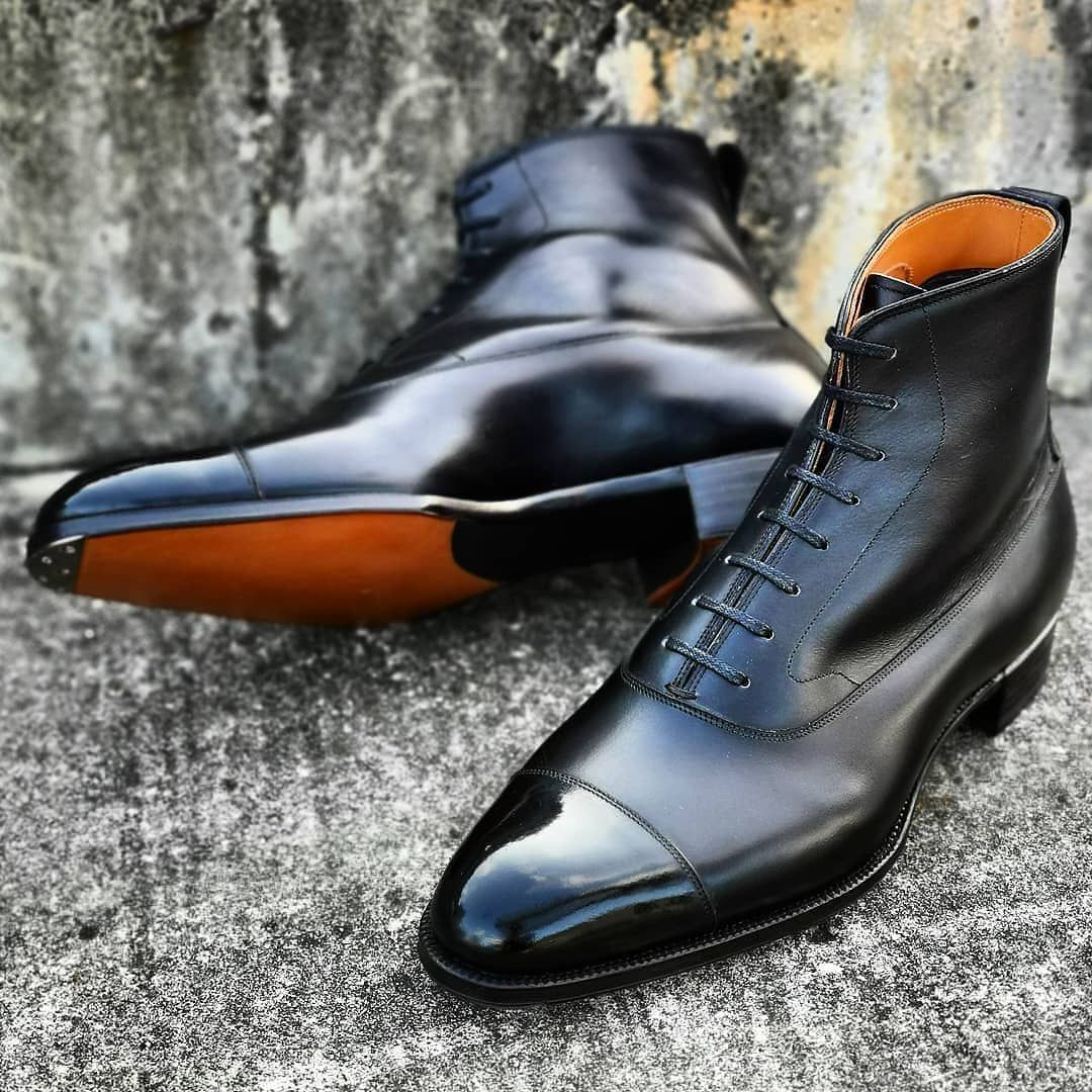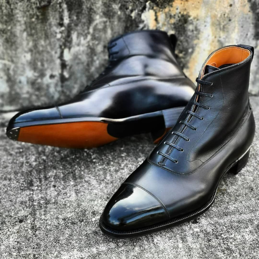 Men's Handmade Black Leather Toe Cap Ankle Leather Dress Boots For Men