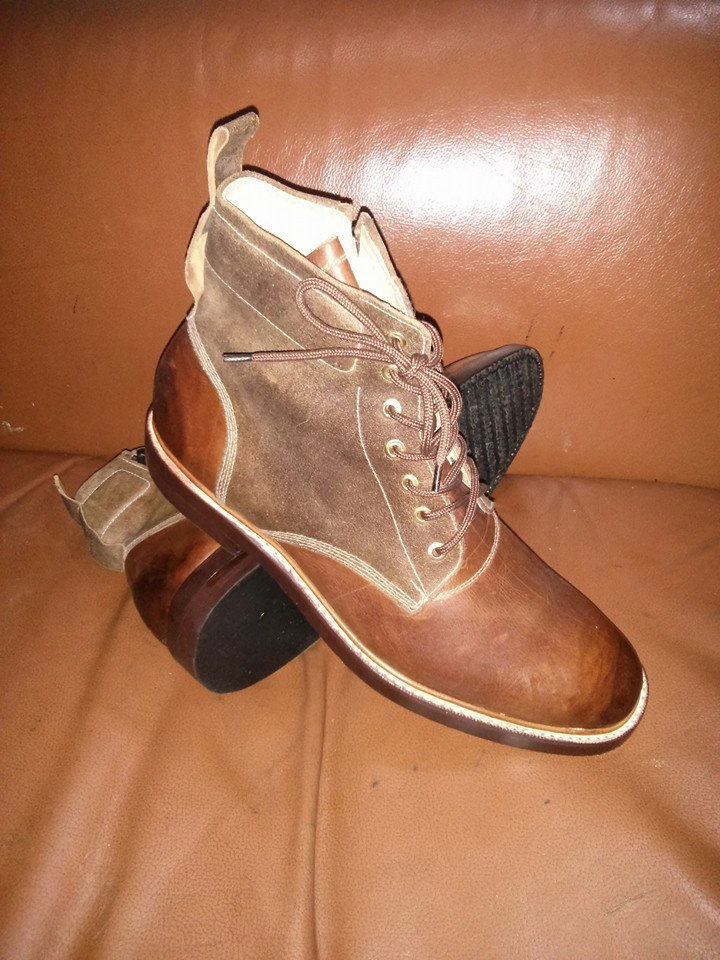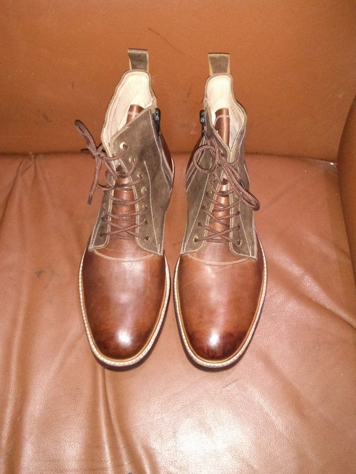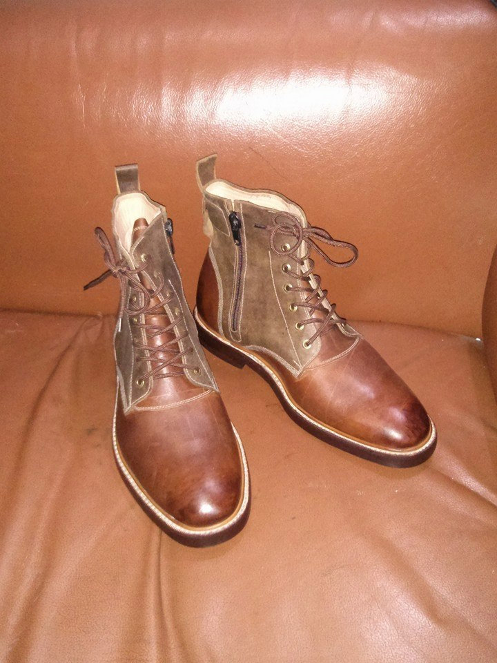 Handmade Leather Brown Two Tone Lace up Dress Leather Boots Men Formal Zipper Boots