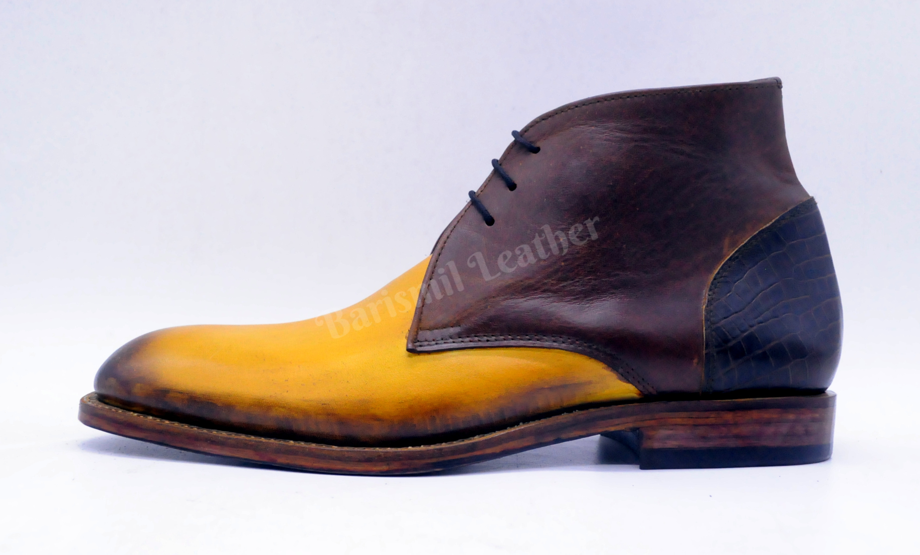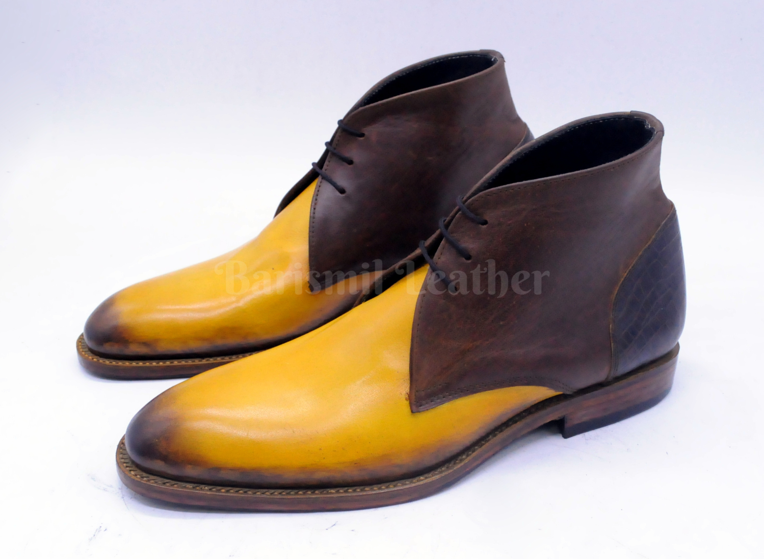 Handmade Leather Two Tone Hand Patina Ankle Boots Leather Dress Boots for Men