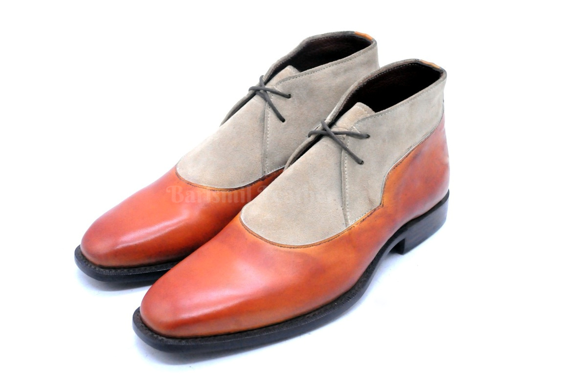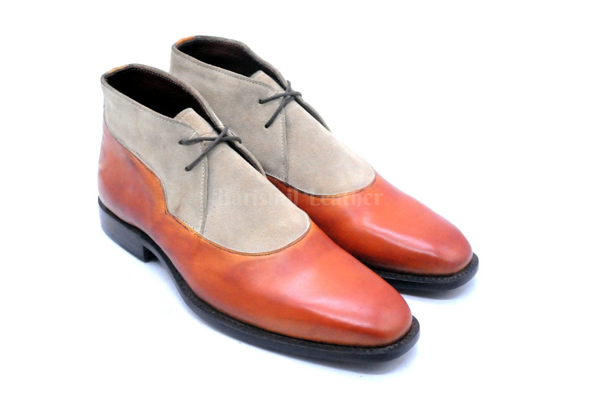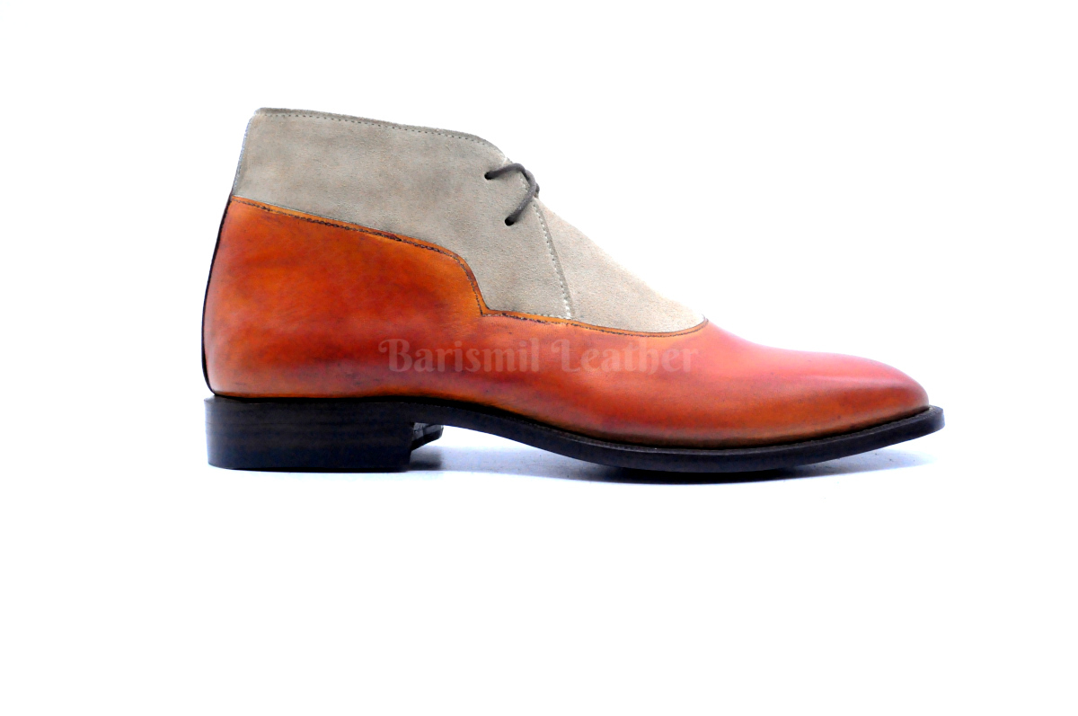 Handmade Leather Two Tone Hand Patina Ankle Boots Leather Dress Boots for Men