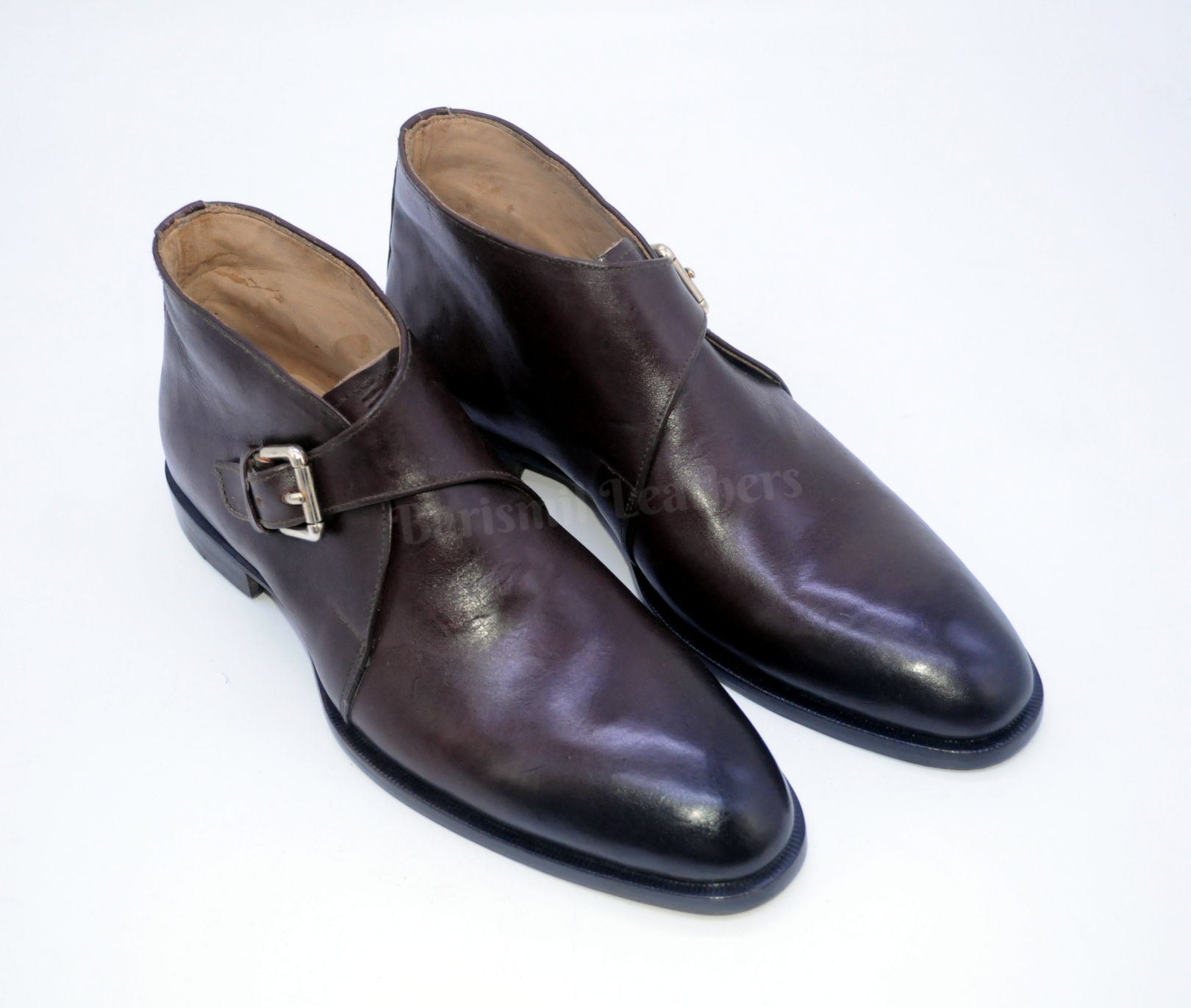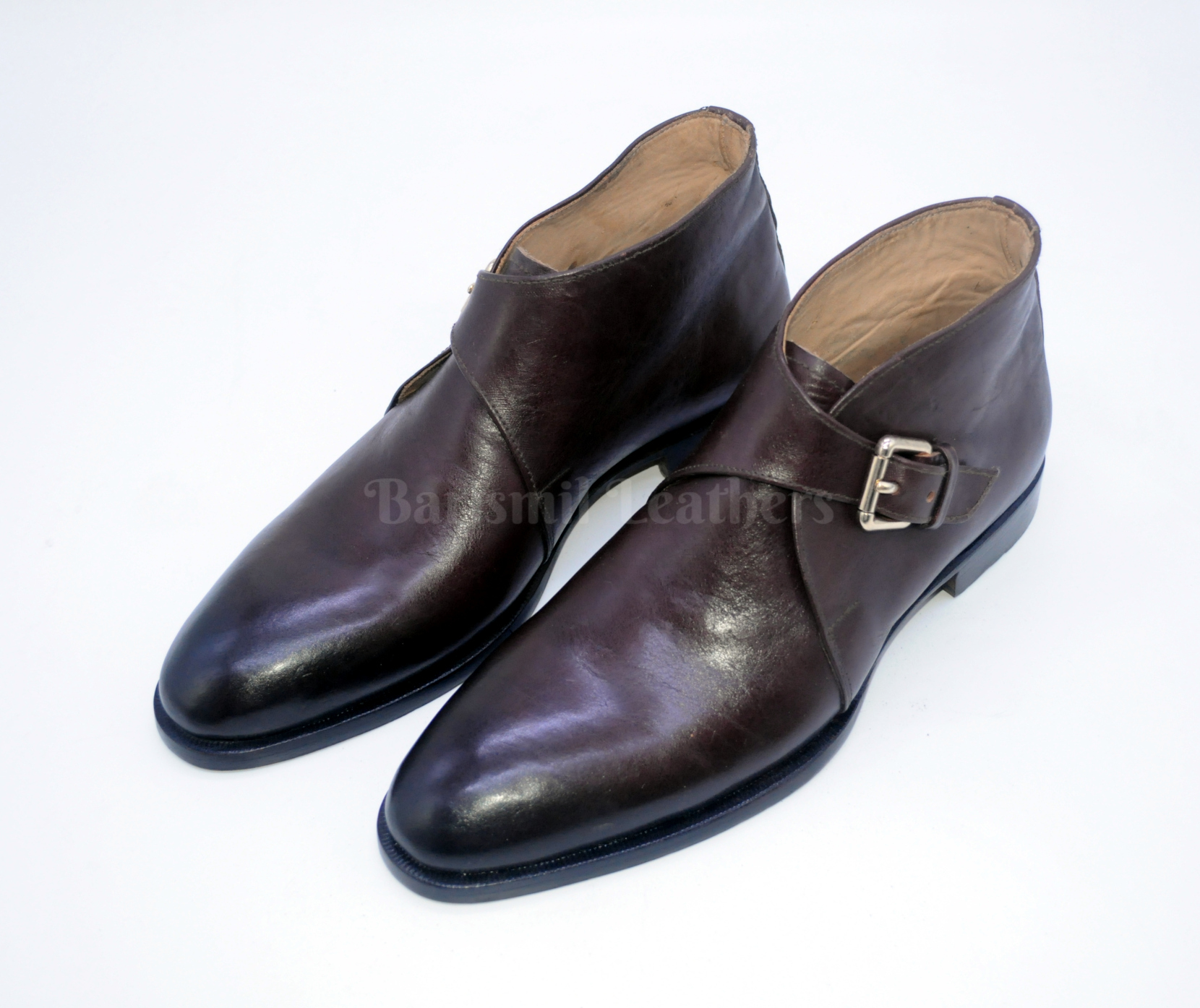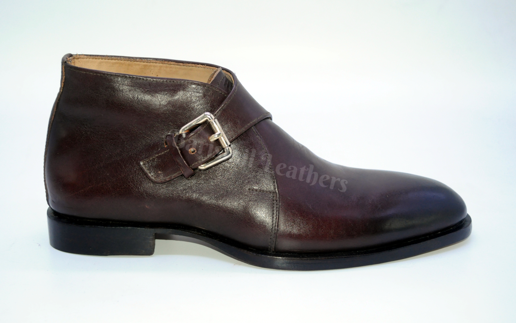 Men Handmade Leather Dark Brown Patina Monk Strap Dress Leather Chukka Boots