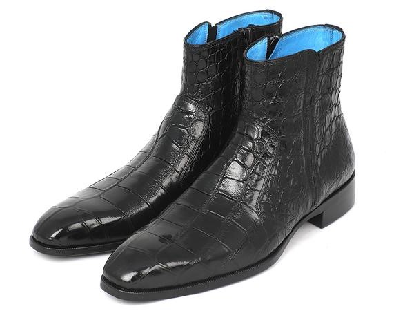 Black Leather Zipper Dress Boots Men Handmade Leather Boots For Men
