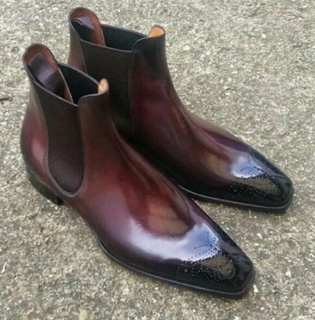 Handmade ankle boots burgundy patina leather men dress chelsea boot custom made on orders boot handmade leather shoes