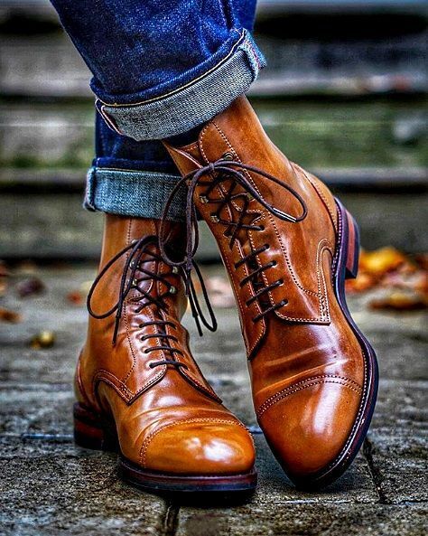 Handmade leather boots brown patina lace up dress boots for men