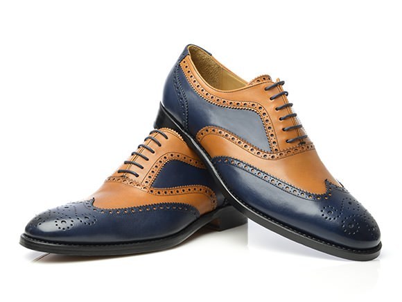 Men's Handmade Two Tone Wingtips Leather Shoes, Genuine Leather Formal Dress Shoes