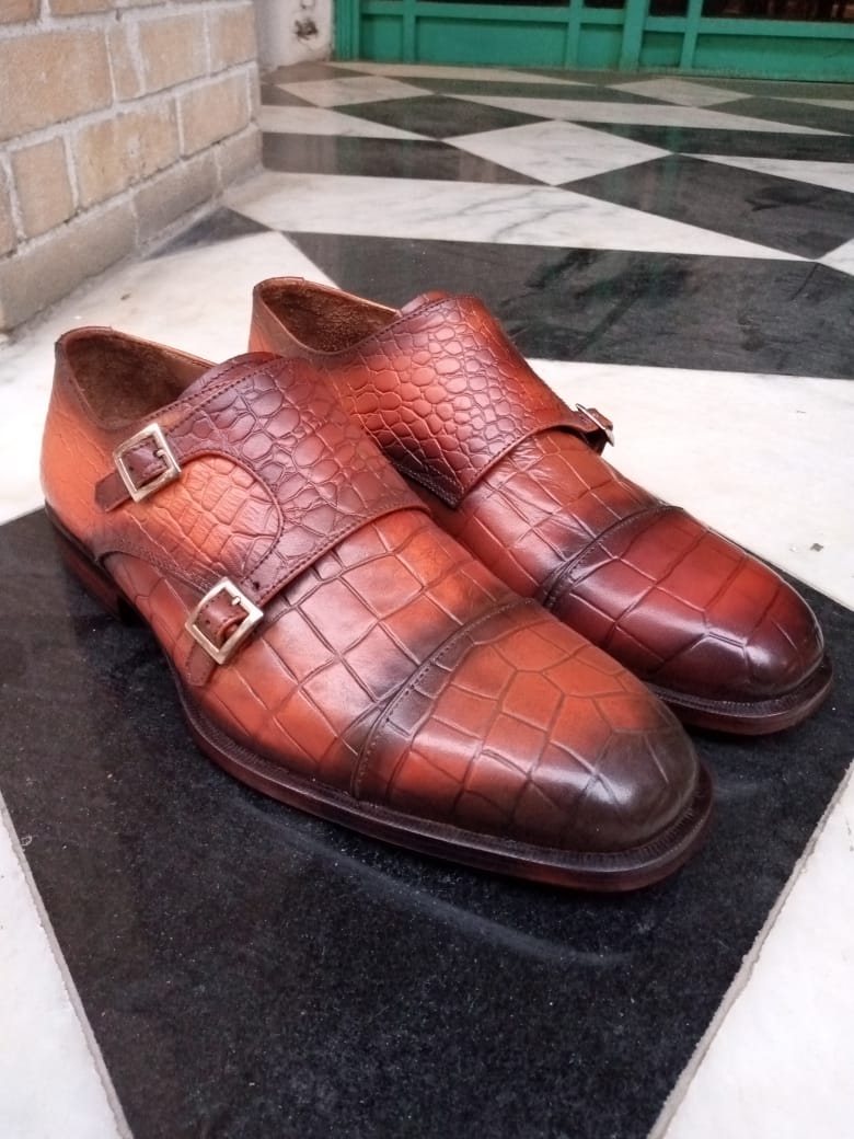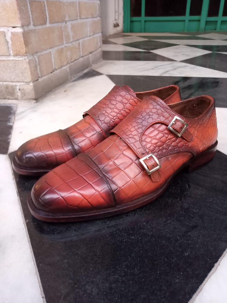 Men's Handmade Double Monk Leather Shoes, Men's Formal Dress Shoes
