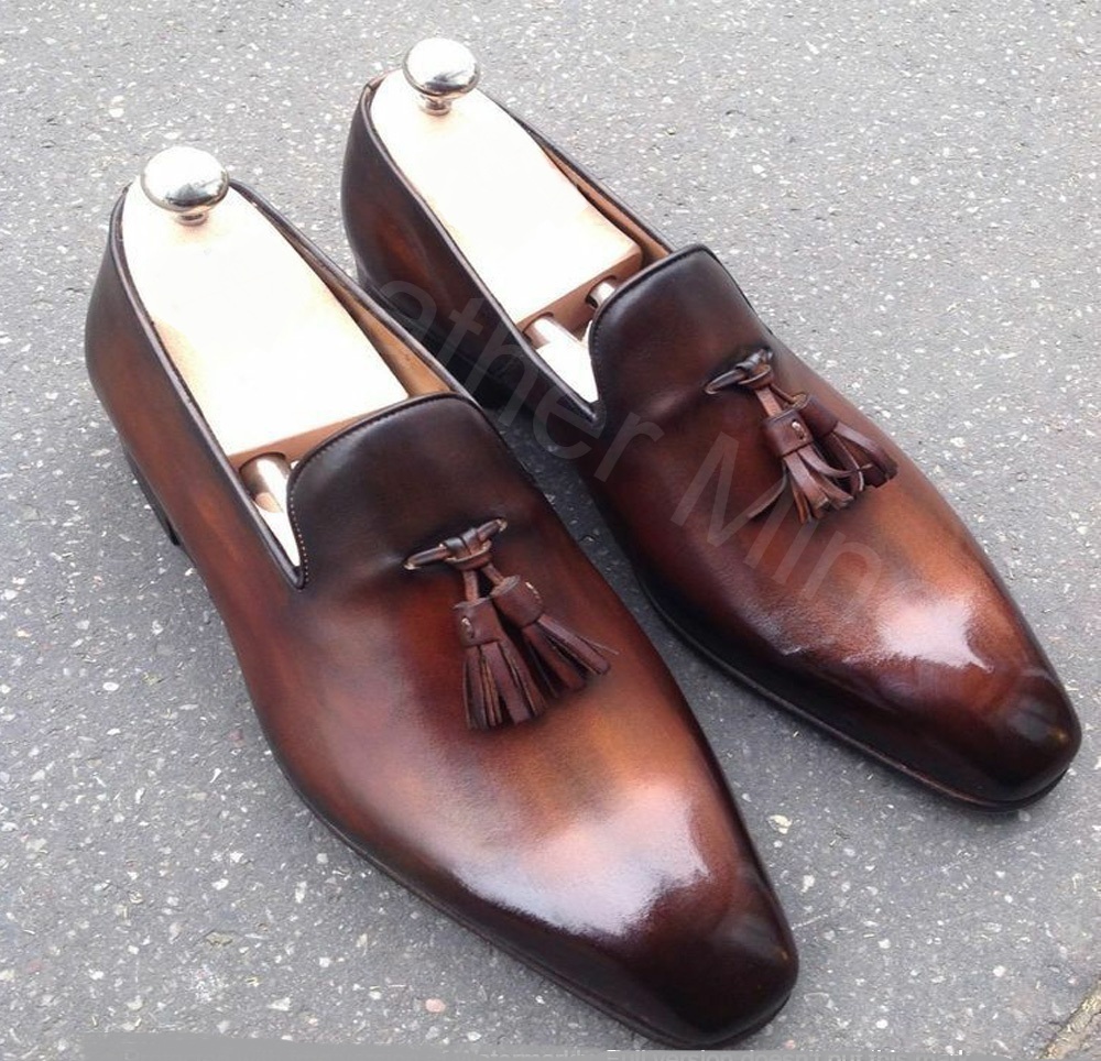 Men's Handmade Tassel Loafers Leather Shoes, Genuine Leather Formal Shoes For Men.