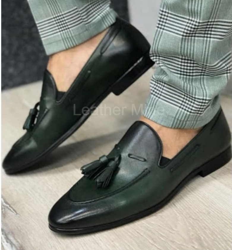Men's Handmade Tassel Loafers Shoes, Genuine Leather Dress Shoes For Men.