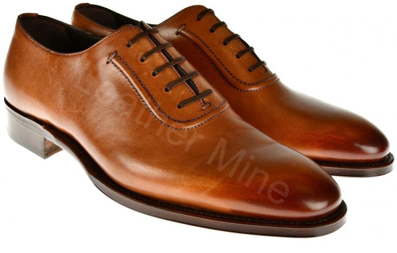 Leather Dress Shoes Mens Handmade Brown Plain Toe Formal Shoes