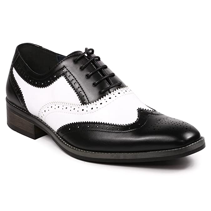 Black White Wingtip Shoes, Mens Leather Formal Shoes