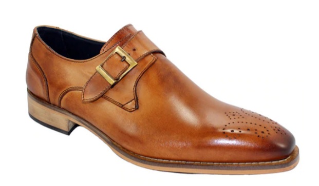 Mens Cognac Monk Shoes, Handmade Leather Dress Shoes