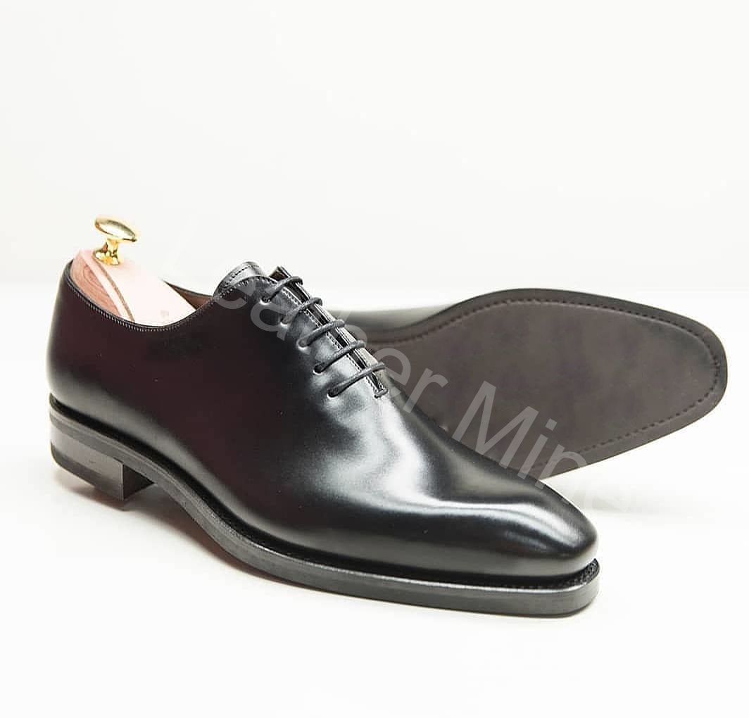 Men's Handmade Black Leather Whole Cut Oxfords Shoes, Genuine Leather Dress Shoes